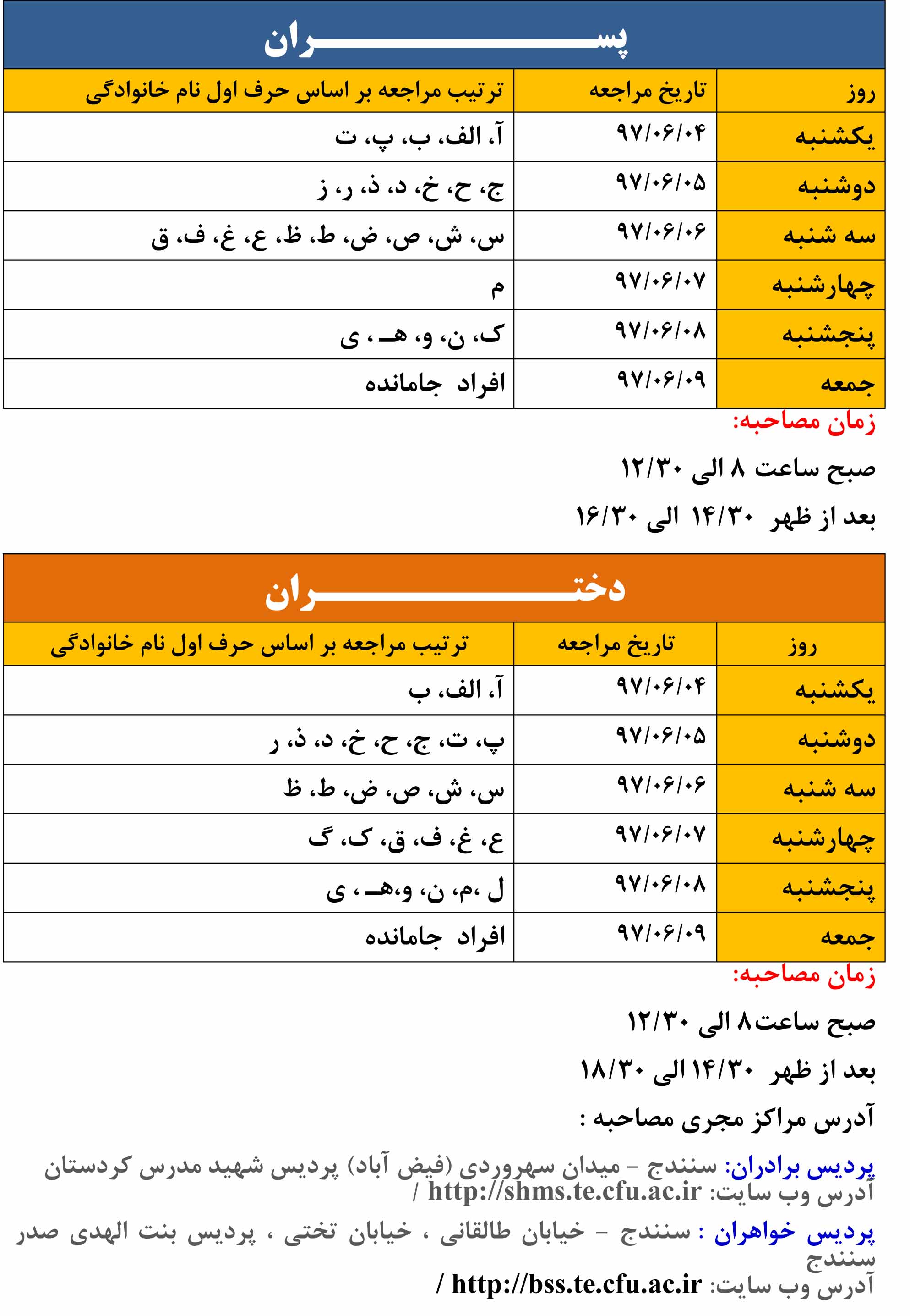 زمانبندی مصاحبه اختصاصی و عمومی داوطلبان ورود به دانشگاه فرهنگیان سال 97