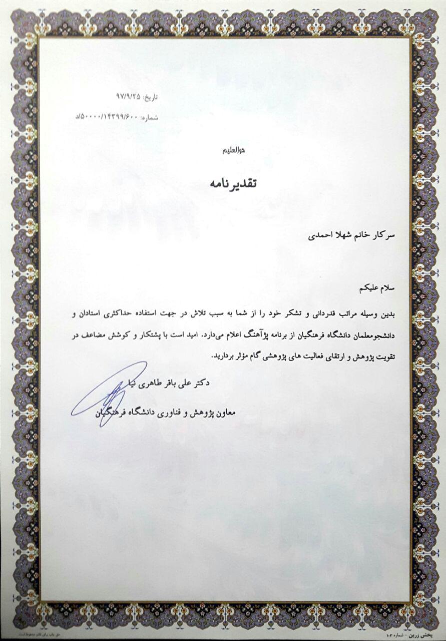 -- تجلیل از دکتر ظهیری به عنوان پژوهشگر برتر دانشگاه فرهنگیان استان کردستان در مراسم هفته پژوهش و فناوری دانشگاه کردستان، چهارشنبه 28 آذر 97