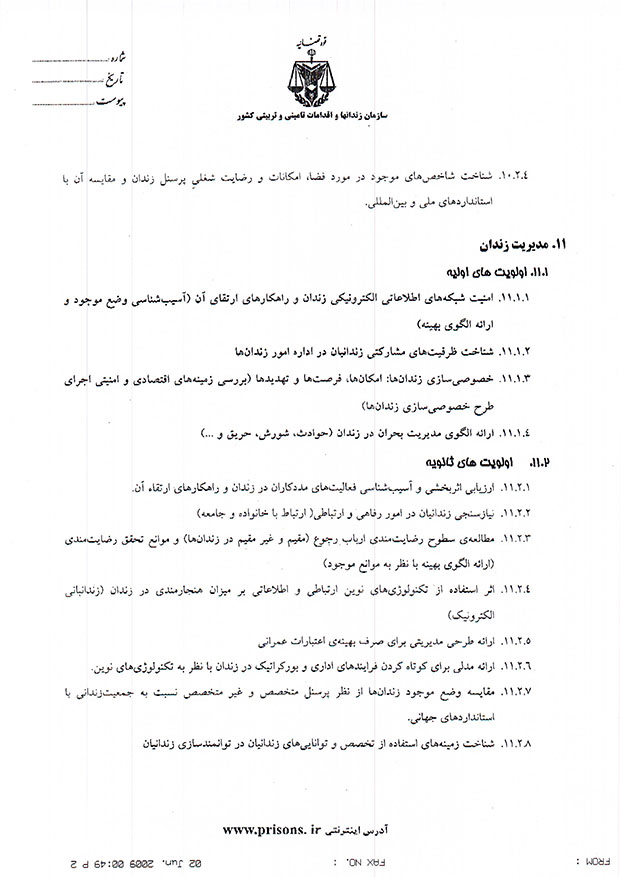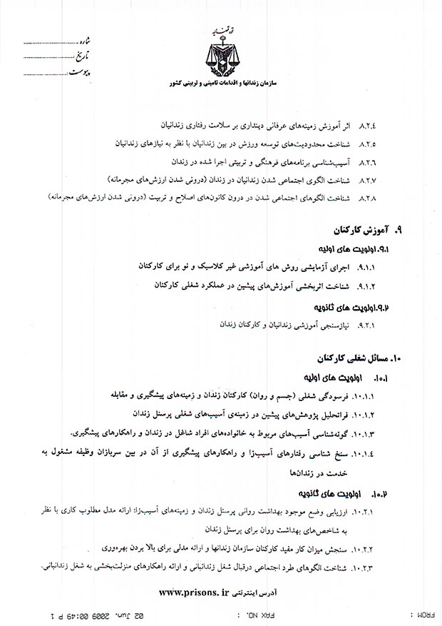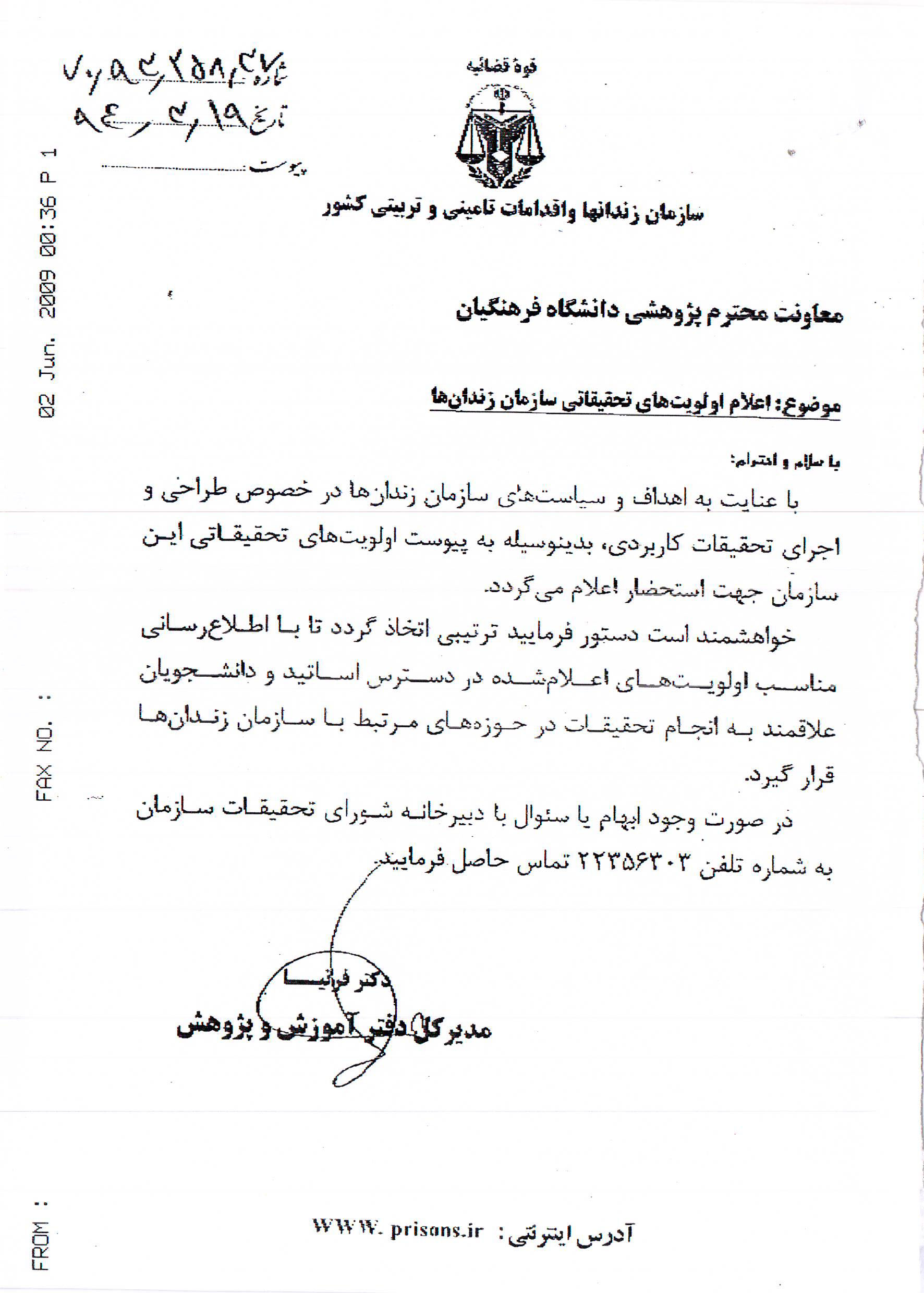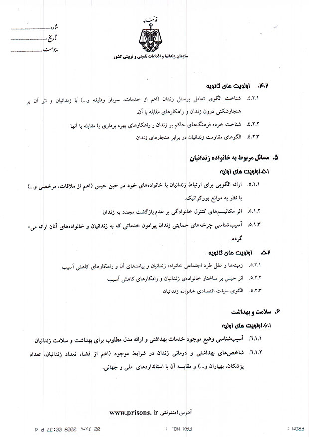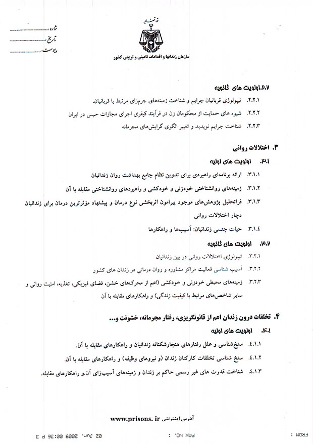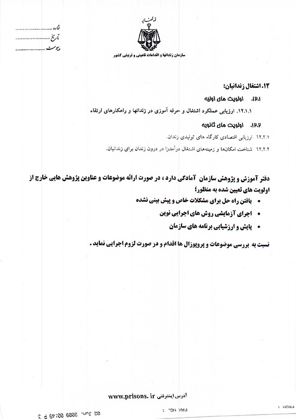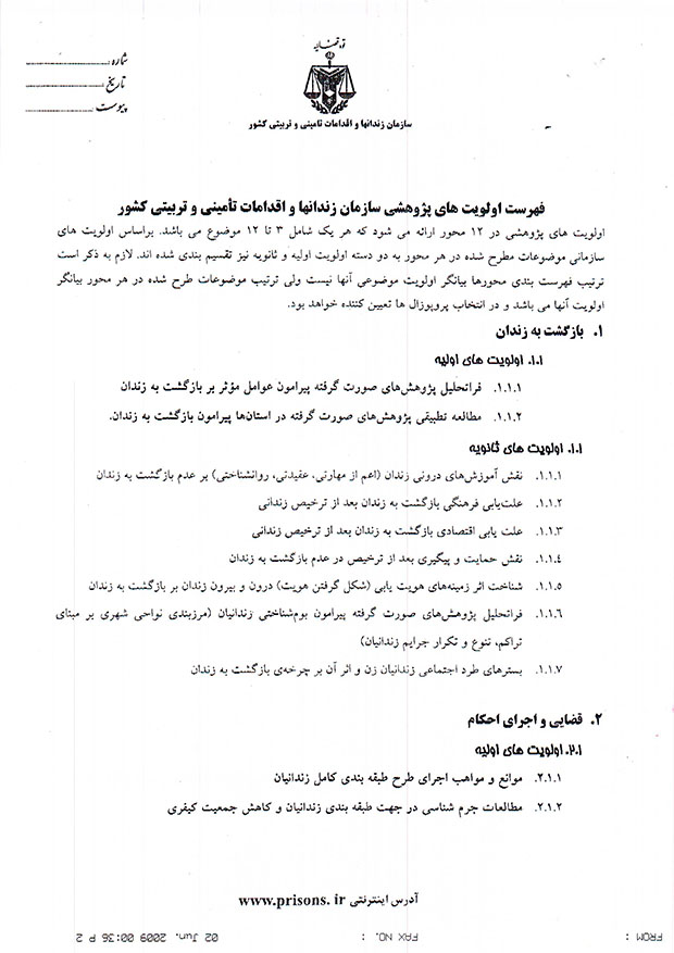 اولویت های تحقیقاتی سازمان زندانها جهت اطلاع دانشجویان و اساتید علاقمند