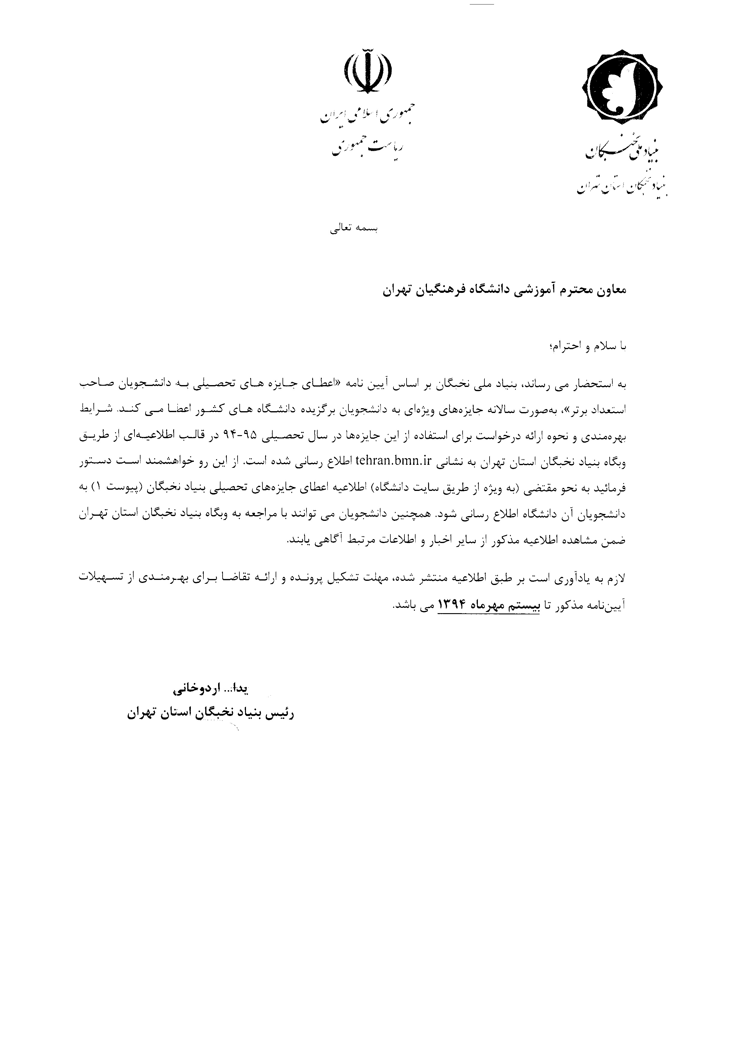 اطلاعیه مهم بنیاد ملی نخبگان