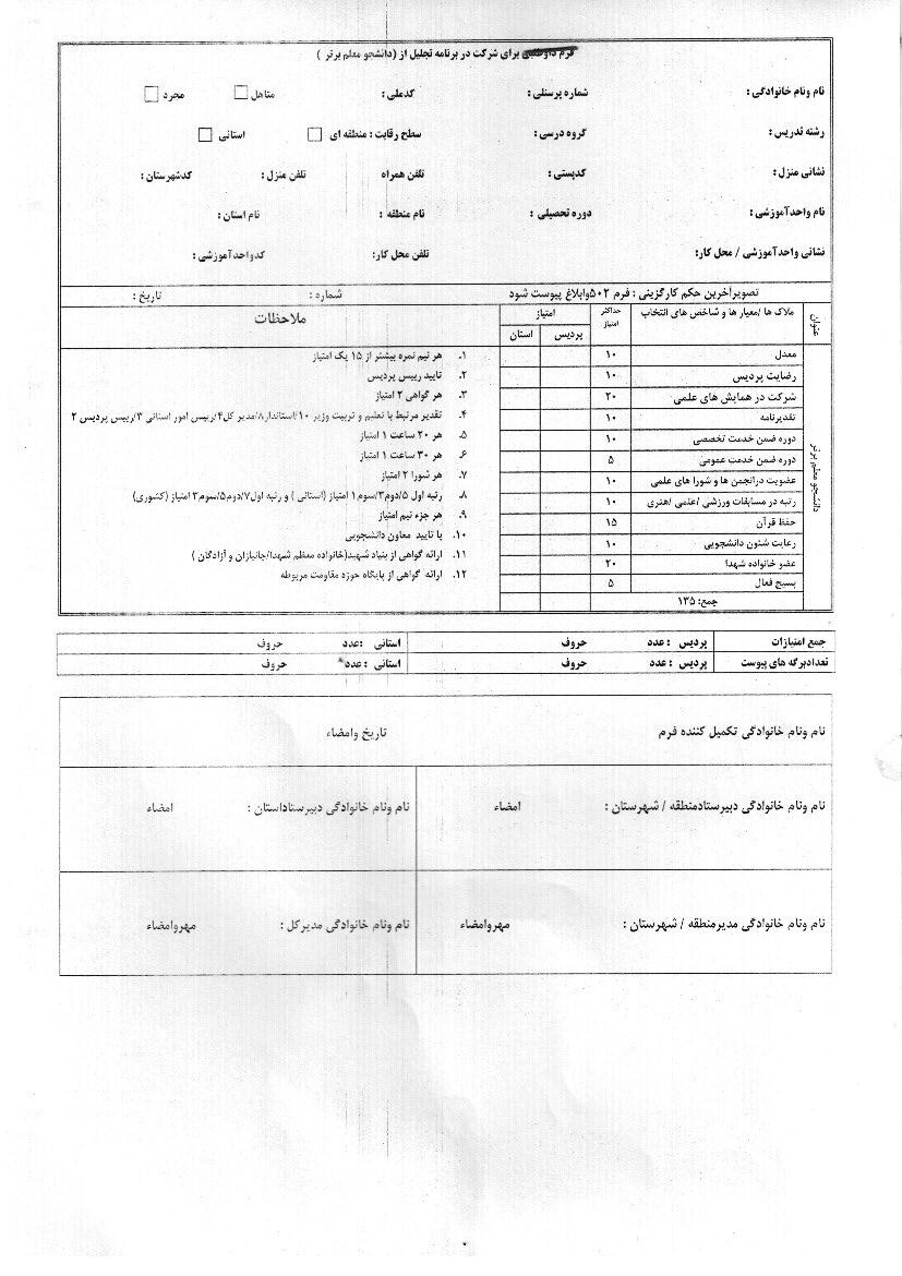بر اساس تصمیم ستاد انتخاب معلم برتر اداره کل آموزش و پرورش مقرر است در هفته بزرگداشت مقام معلم از 2 نفر دانشجومعلمان بر اساس شاخص های فرم پیوست تجلیل می گردد