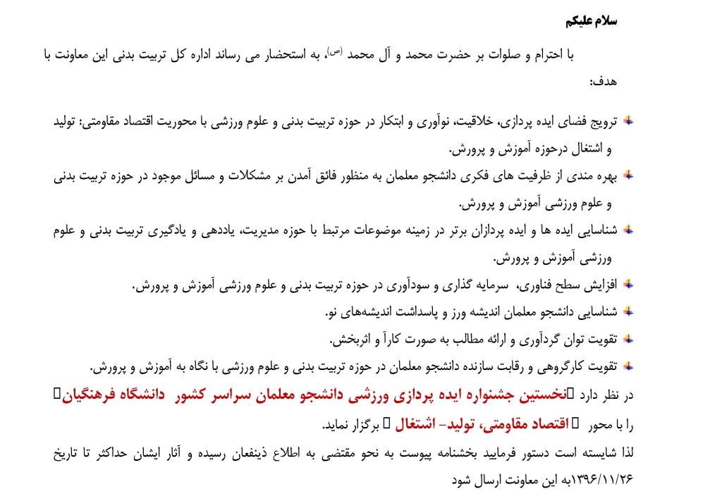 نخستین جشنواره ایده پردازی ورزشی دانشجو معلمان سراسر کشور
