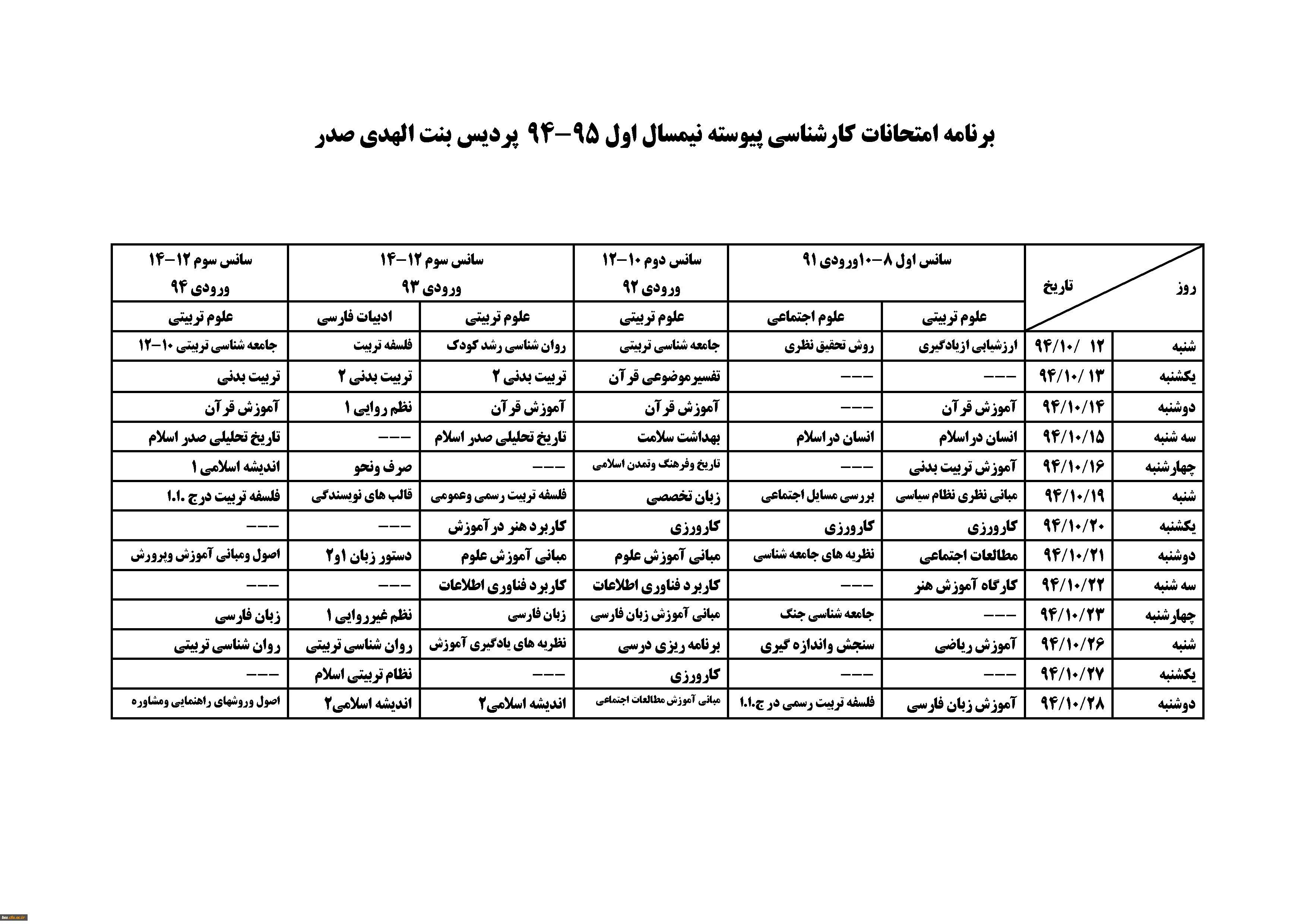 جدول برنامه درسی رشنه های کارشناسی پیوسته