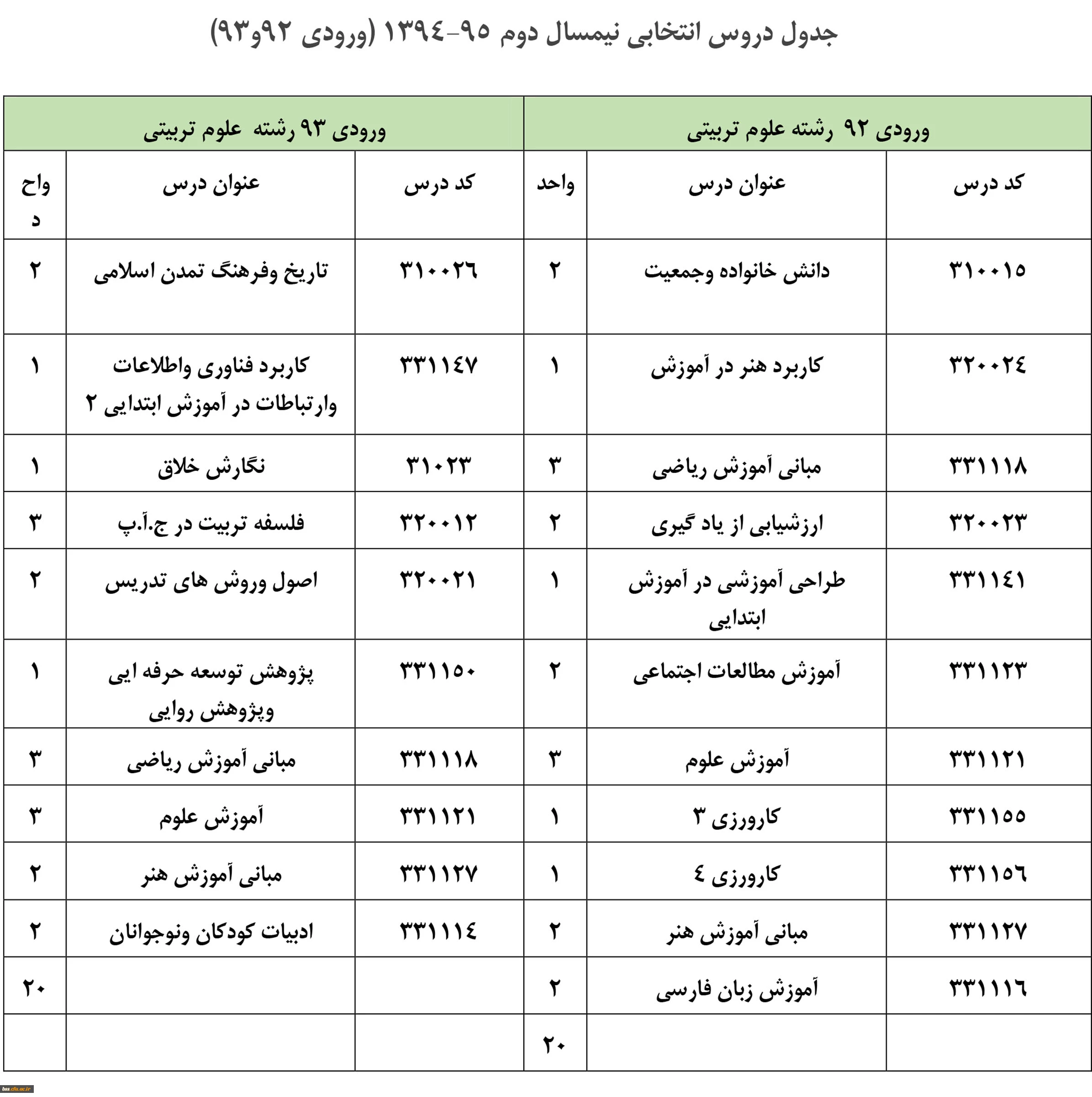رشته آموزش ابتدایی سال95(جدید)