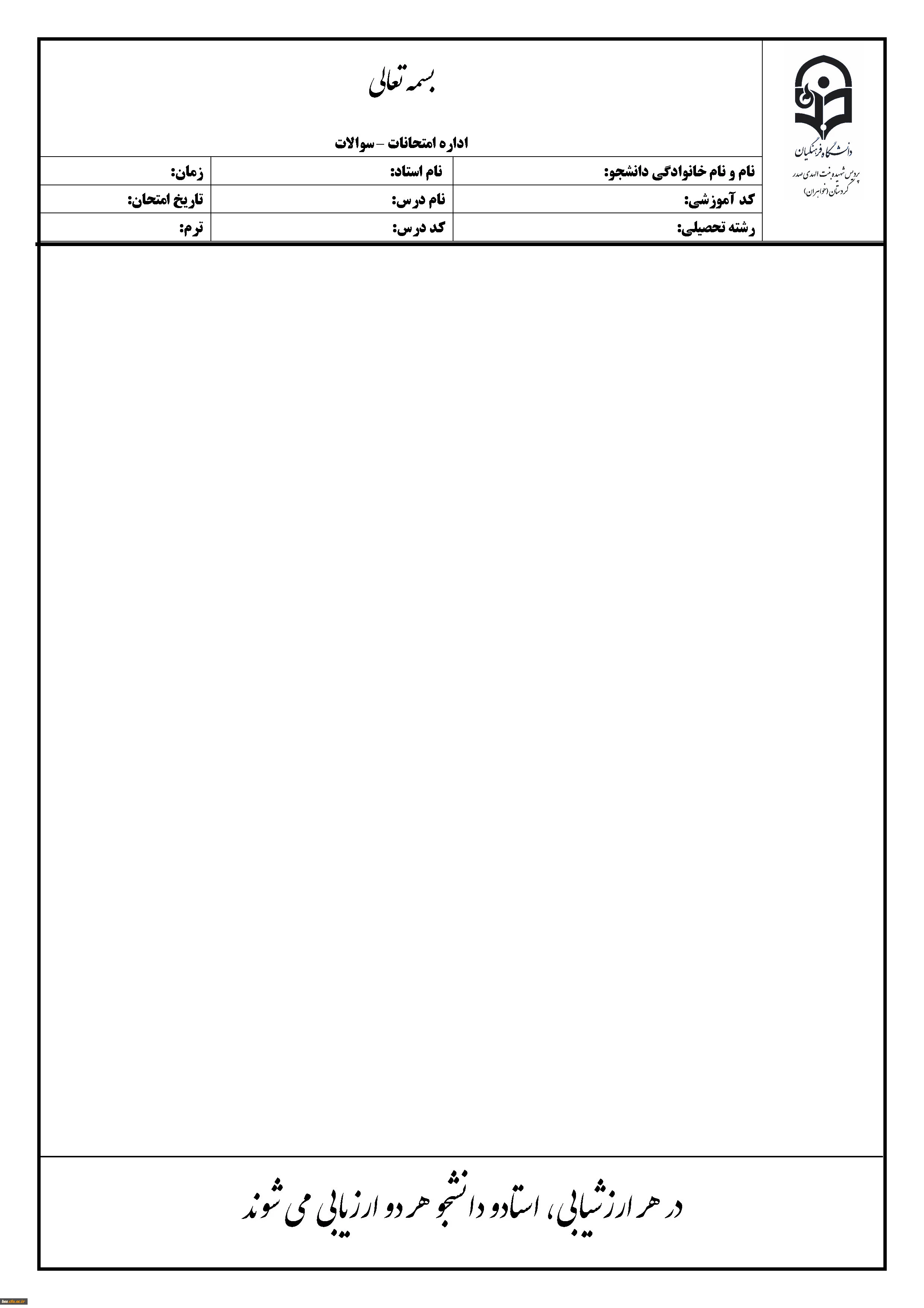 فرم سربرگ امتحانات