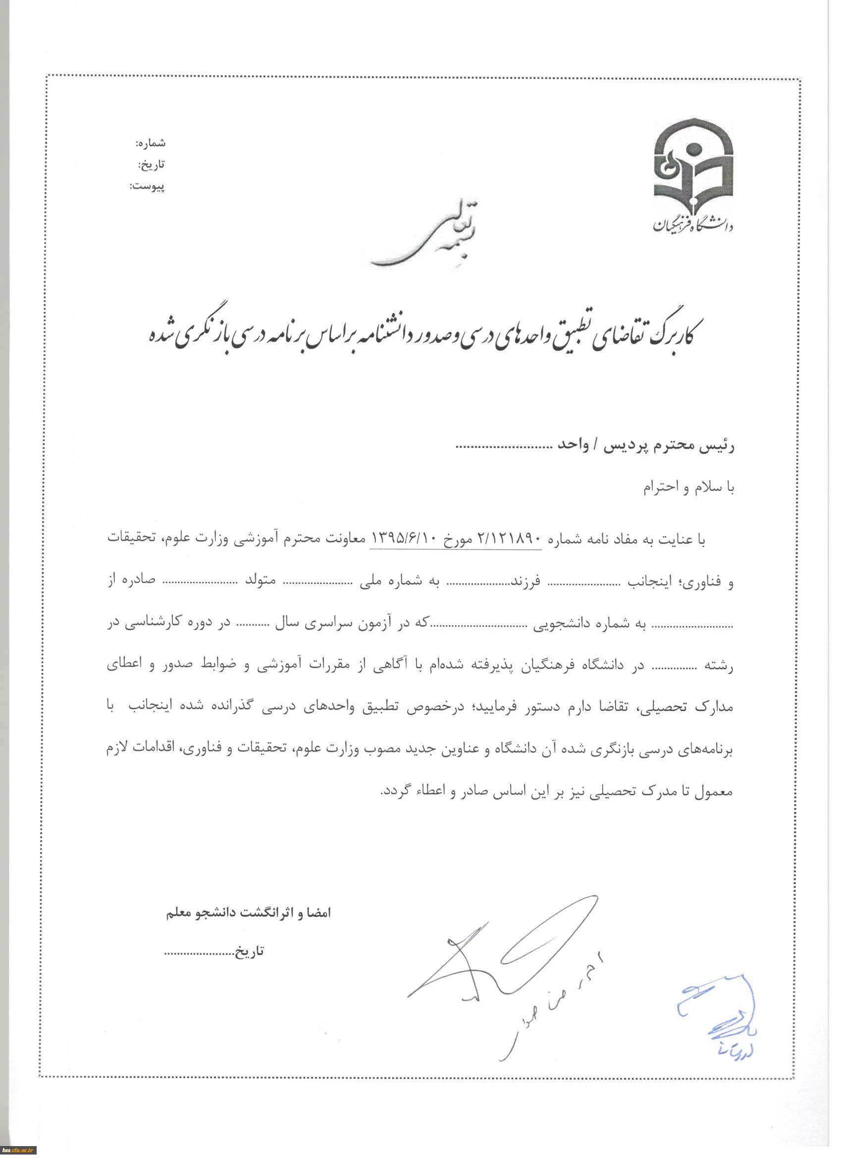 فرم درخواست شرکت و تعهدنامه اردو(مخصوص دانشجو)