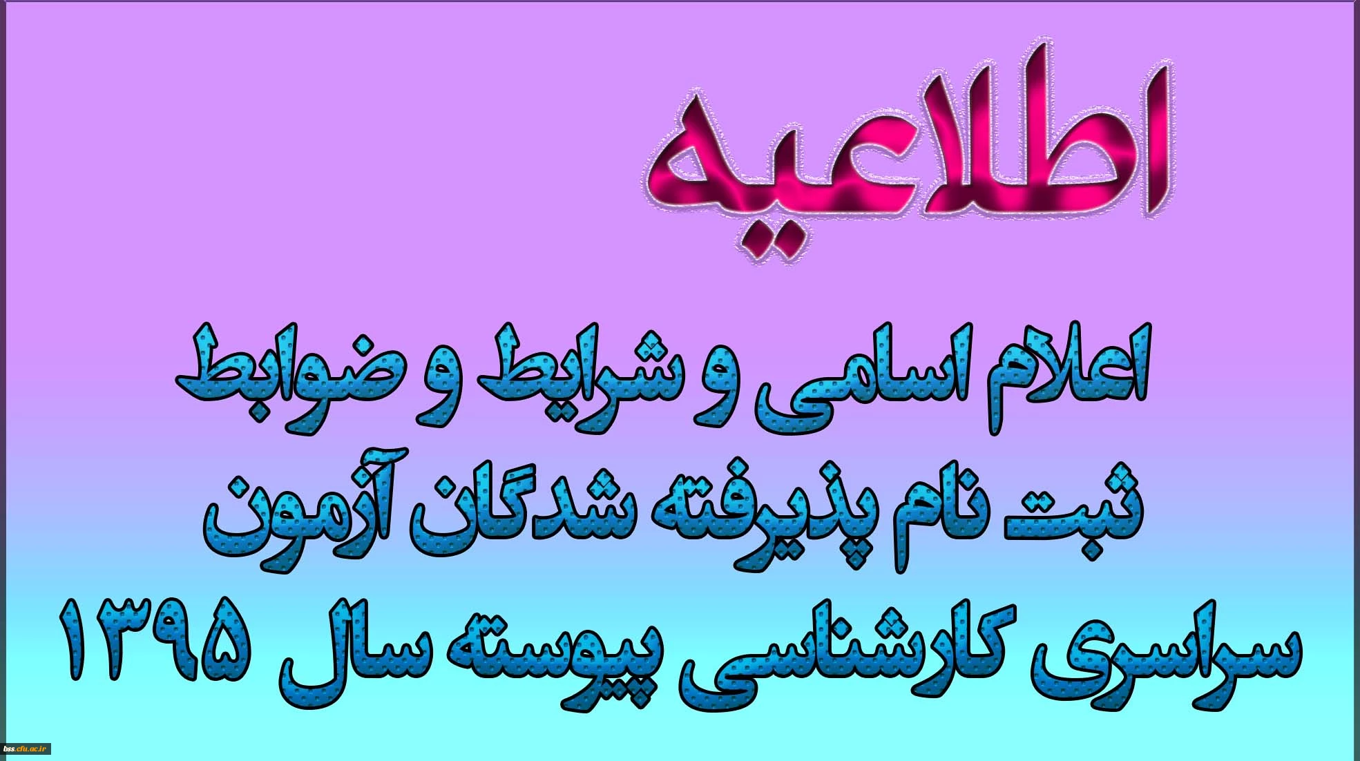 اعلام اسامی و شرایط و ضوابط ثبت نام پذیرفته شدگان آزمون سراسری کارشناسی پیوسته سال 1395