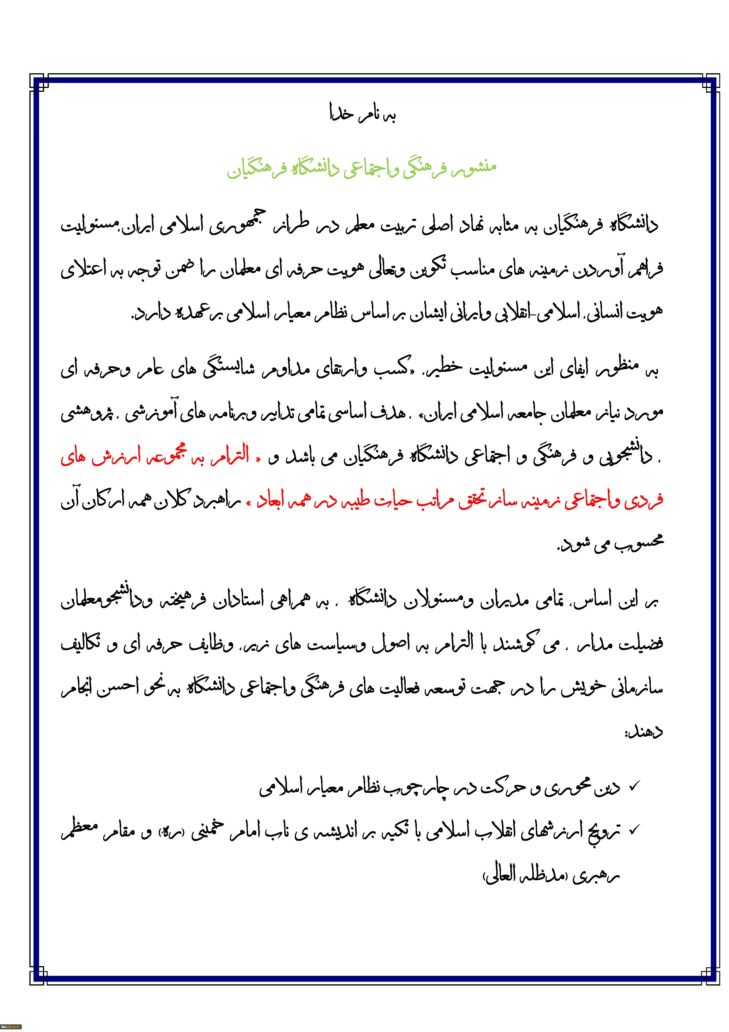منشور فرهنگی ، اجتماعی دانشگاه فرهنگیان