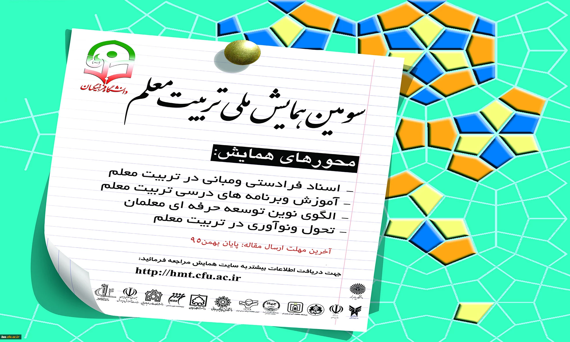 امتیاز دهید : معاونت پژوهشی و فناوری دانشگاه برگزار می کند: سومین همایش ملی تربیت معلم شنبه 13 آذر 1395 ساعت 1:15