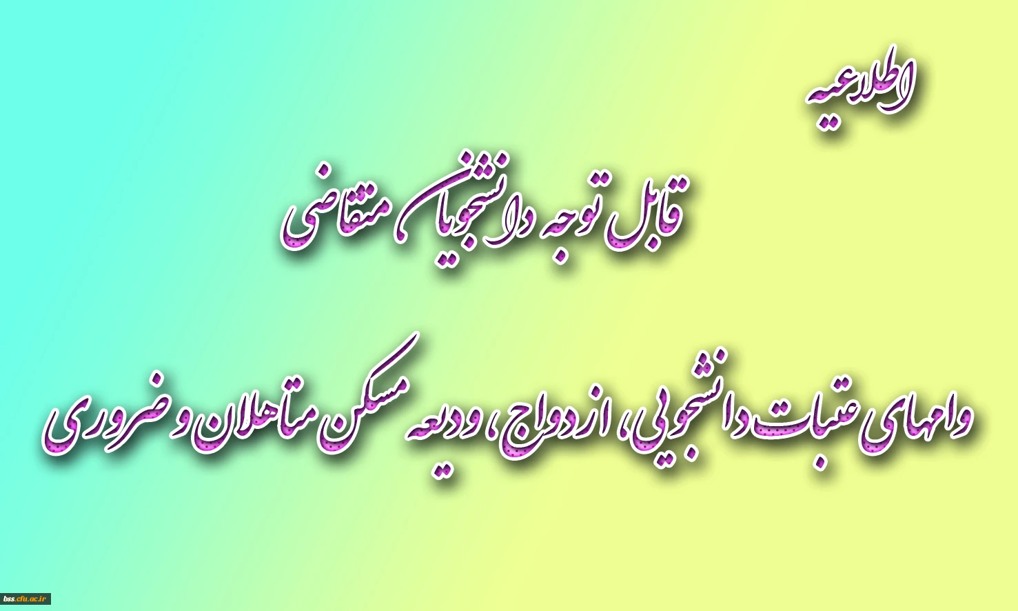 امتیاز دهید : قابل توجه دانشجویان متقاضی وامهای عتبات دانشجویی، ازدواج، ودیعه مسکن متاهلان و ضروری چهارشنبه 8 دی 1395 ساعت 10:37