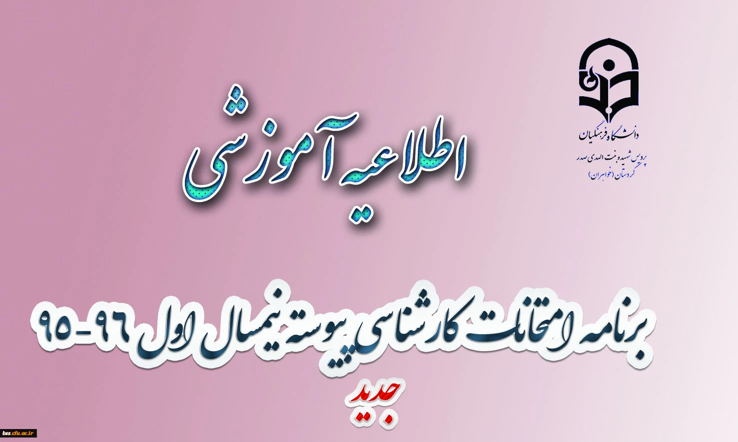 امتیاز دهید : برنامه امتحانات کارشناسی پیوسته نیمسال اول 96-95 پردیس بنت الهدی صدر(جدید) دوشنبه 13 دی 1395 ساعت 9:43