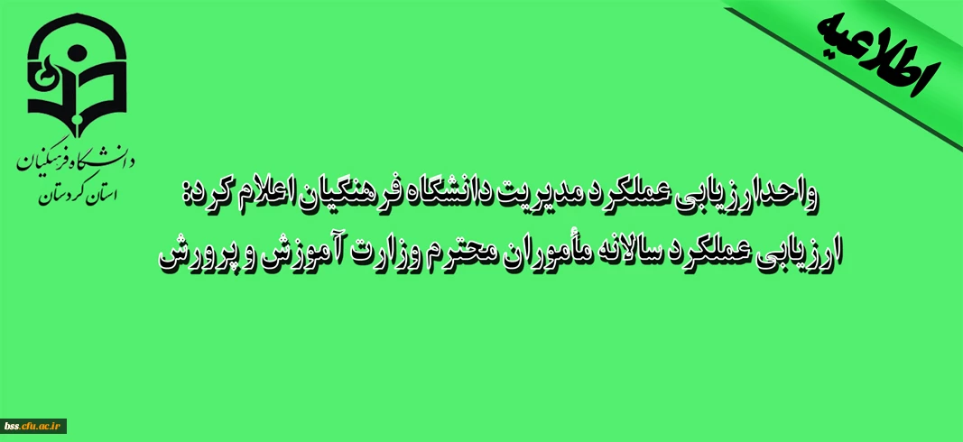 واحدارزیابی عملکرد مدیریت دانشگاه فرهنگیان اعلام کرد: ارزیابی عملکرد سالانه مأموران محترم وزارت آموزش و پرورش 2
