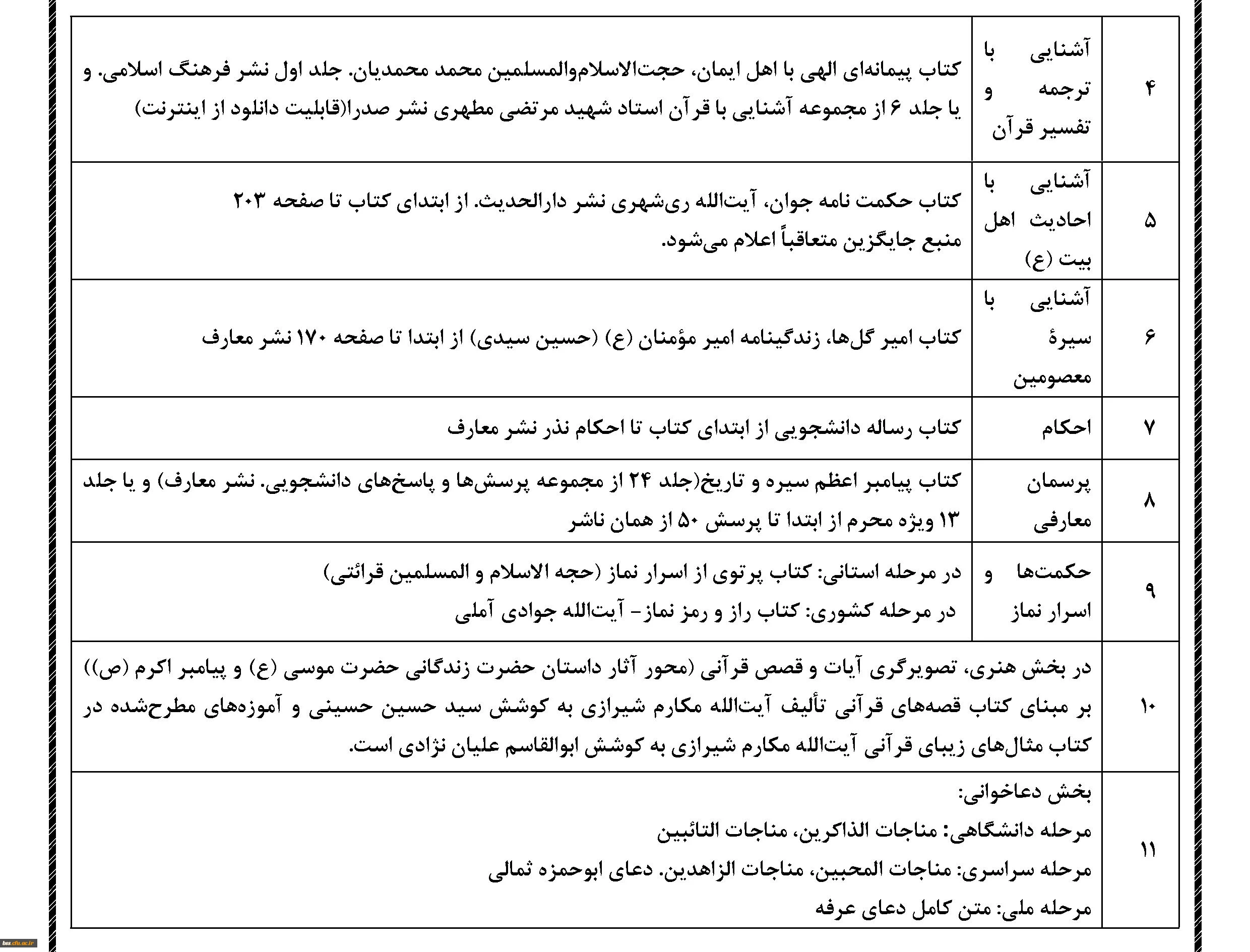 جدول توزیع درسها در هشت نیم سال کارشناسی پیوسته