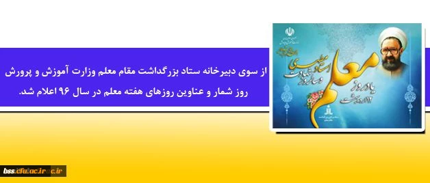 از سوی دبیرخانه ستاد بزرگداشت مقام معلماعلام شد. روز شمار و عناوین روزهای هفته معلم در سال 96 2