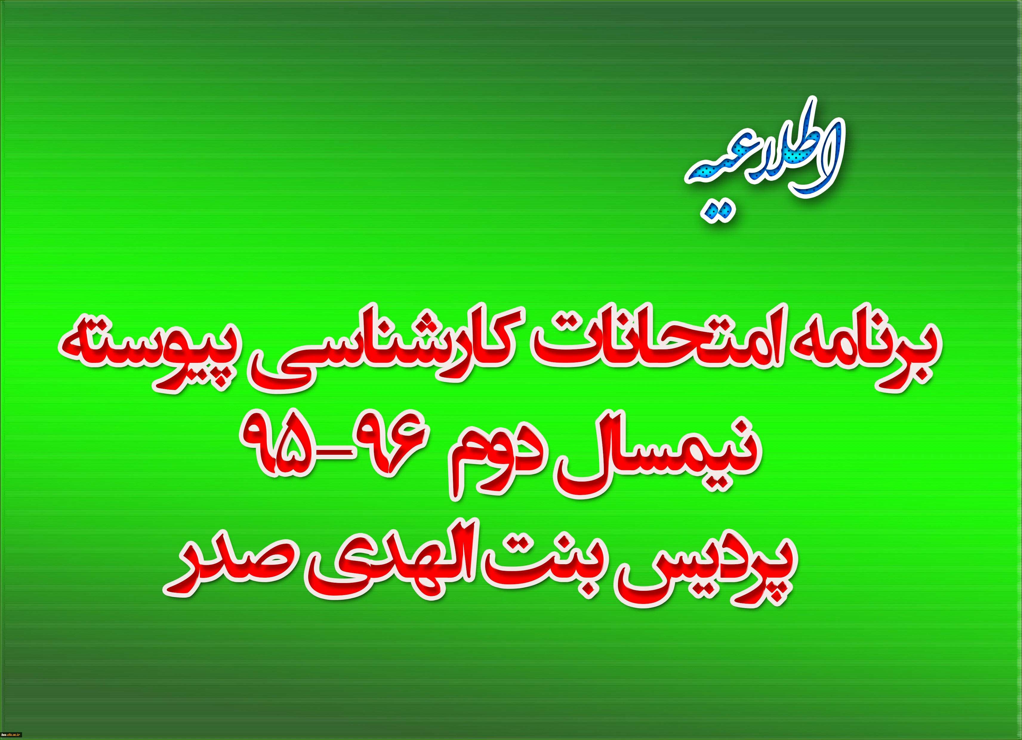 امتیاز دهید : برنامه امتحانات کارشناسی پیوسته نیمسال دوم 96-95 پردیس بنت الهدی صدر یکشنبه 28 خرداد 1396 ساعت 10:02