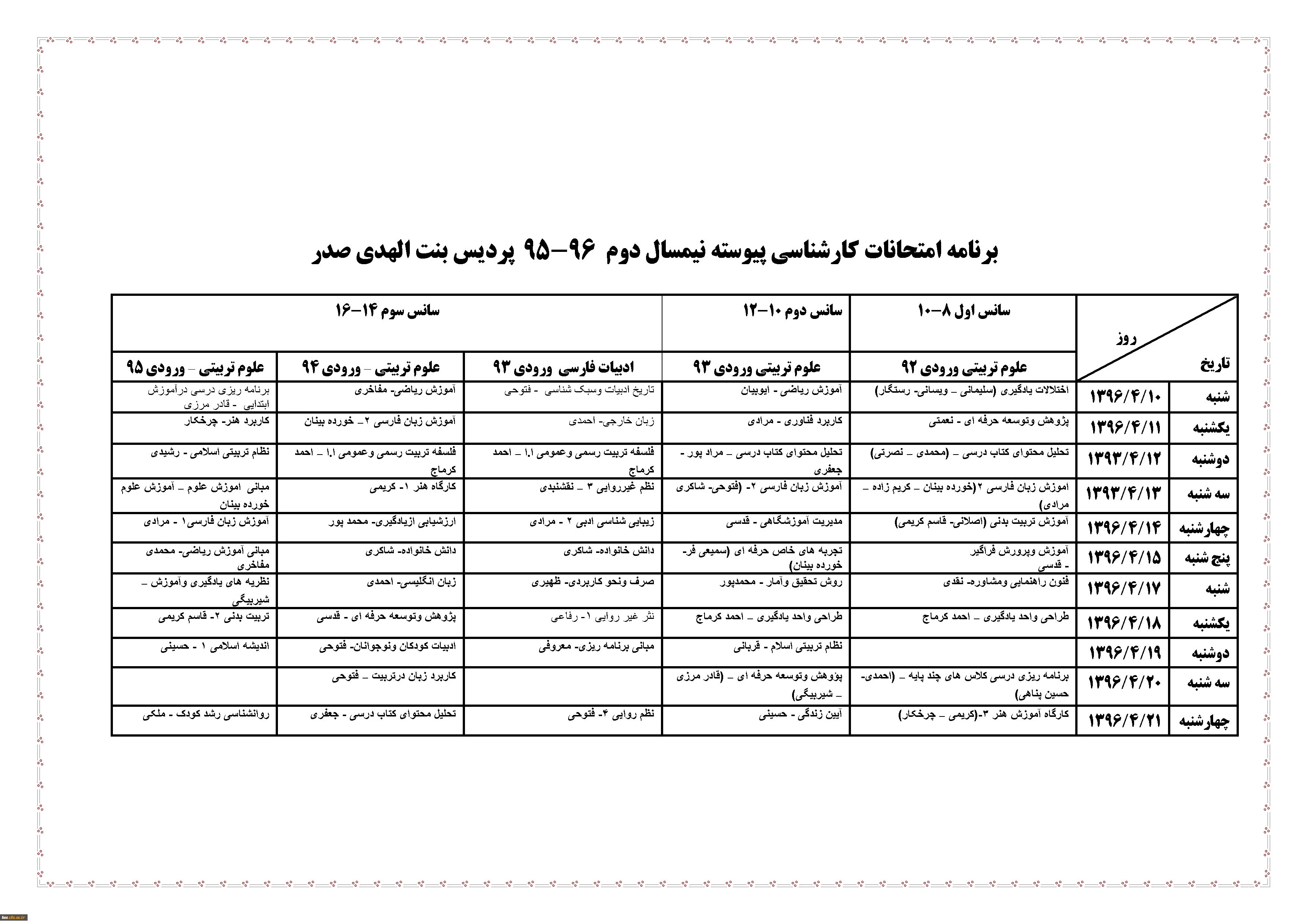 جدول برنامه درسی رشنه های کارشناسی پیوسته