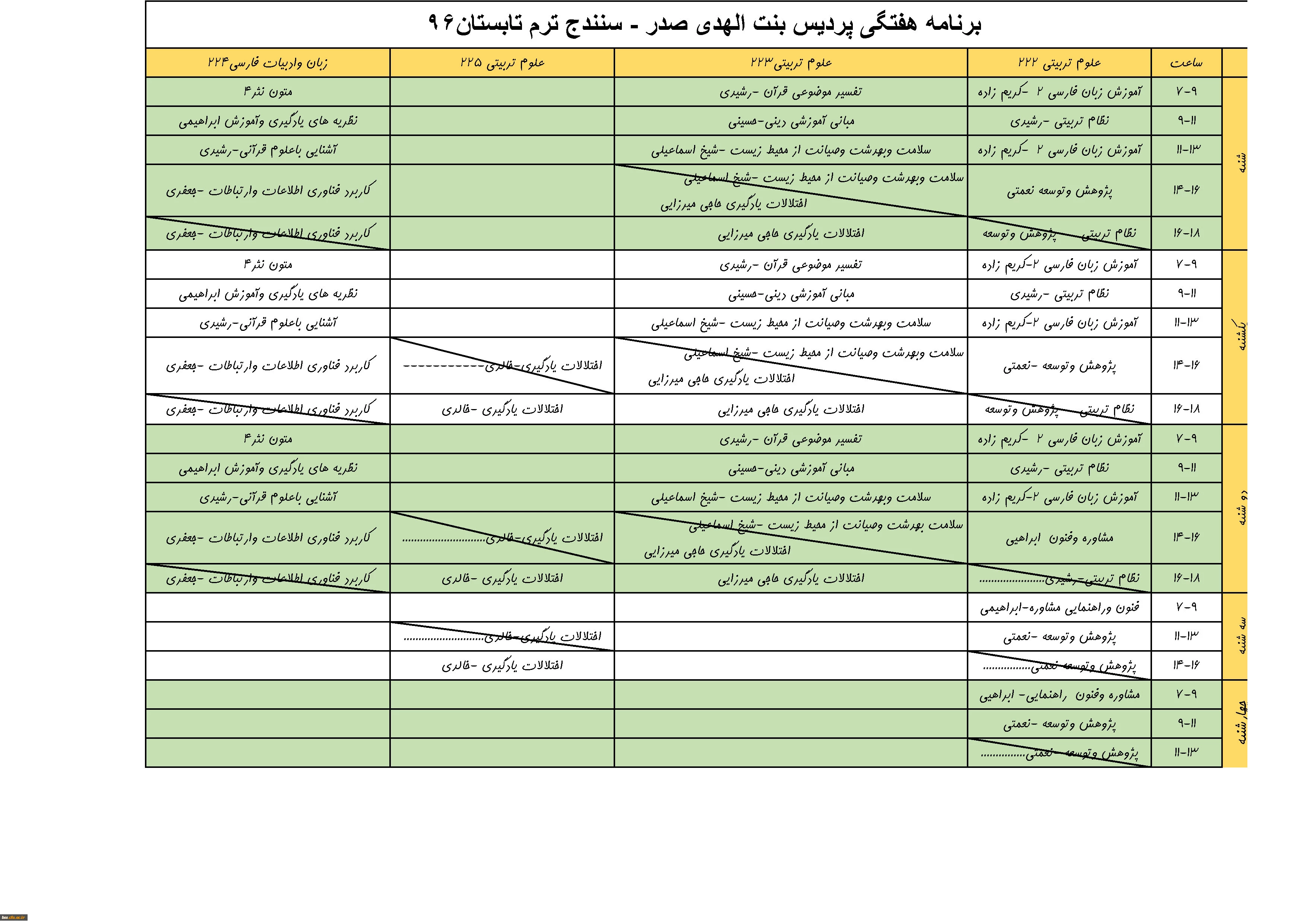 جدول برنامه درسی رشنه های کارشناسی پیوسته