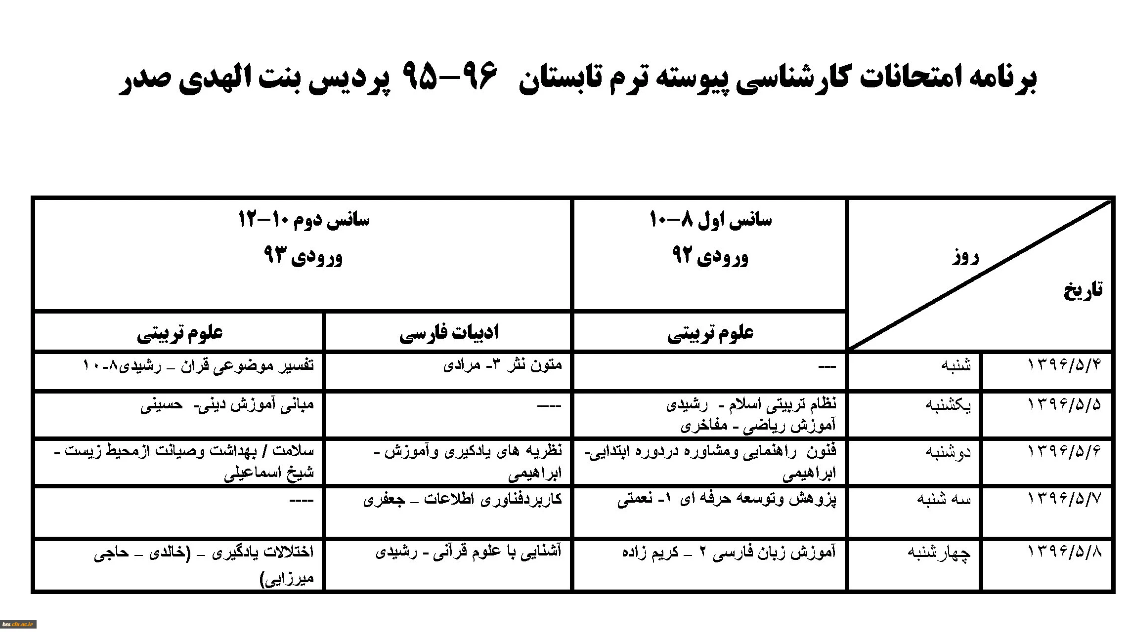 جدول برنامه درسی رشنه های کارشناسی پیوسته