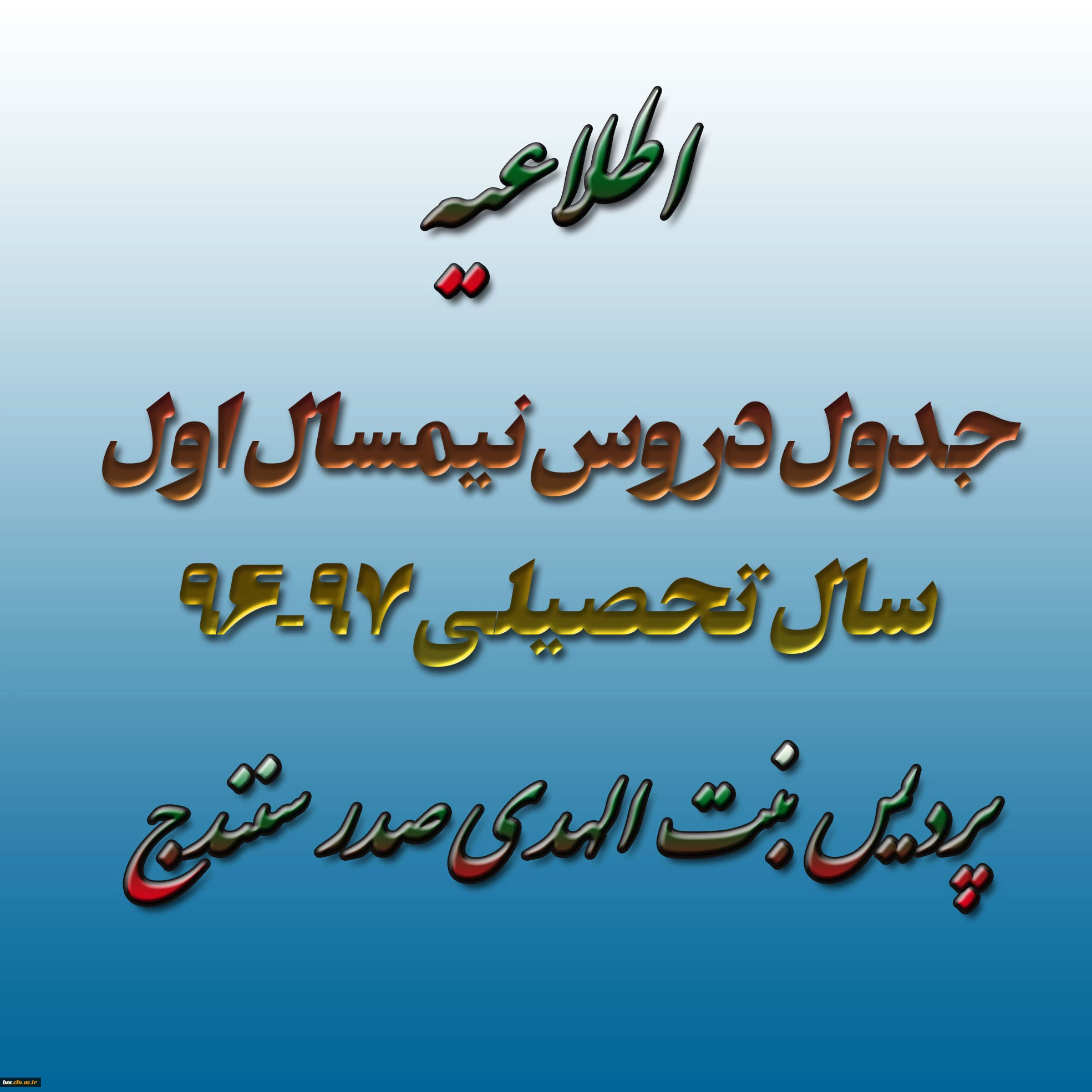 امتیاز دهید : جدول دروس نیمسال اول سال تحصیلی 97-96 پردیس بنت الهدی صدر کردستان پنجشنبه 23 شهریور 1396 ساعت 14:42
