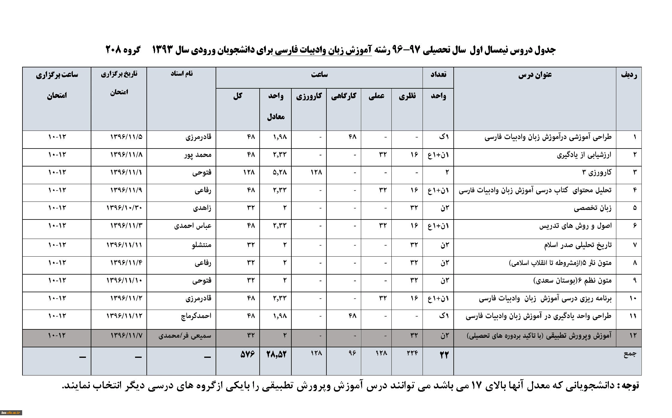 راهنمای تطبیق درسها در برنامه درسی قدیم و جدید کارشناسی زبان و ادبیات فارسی