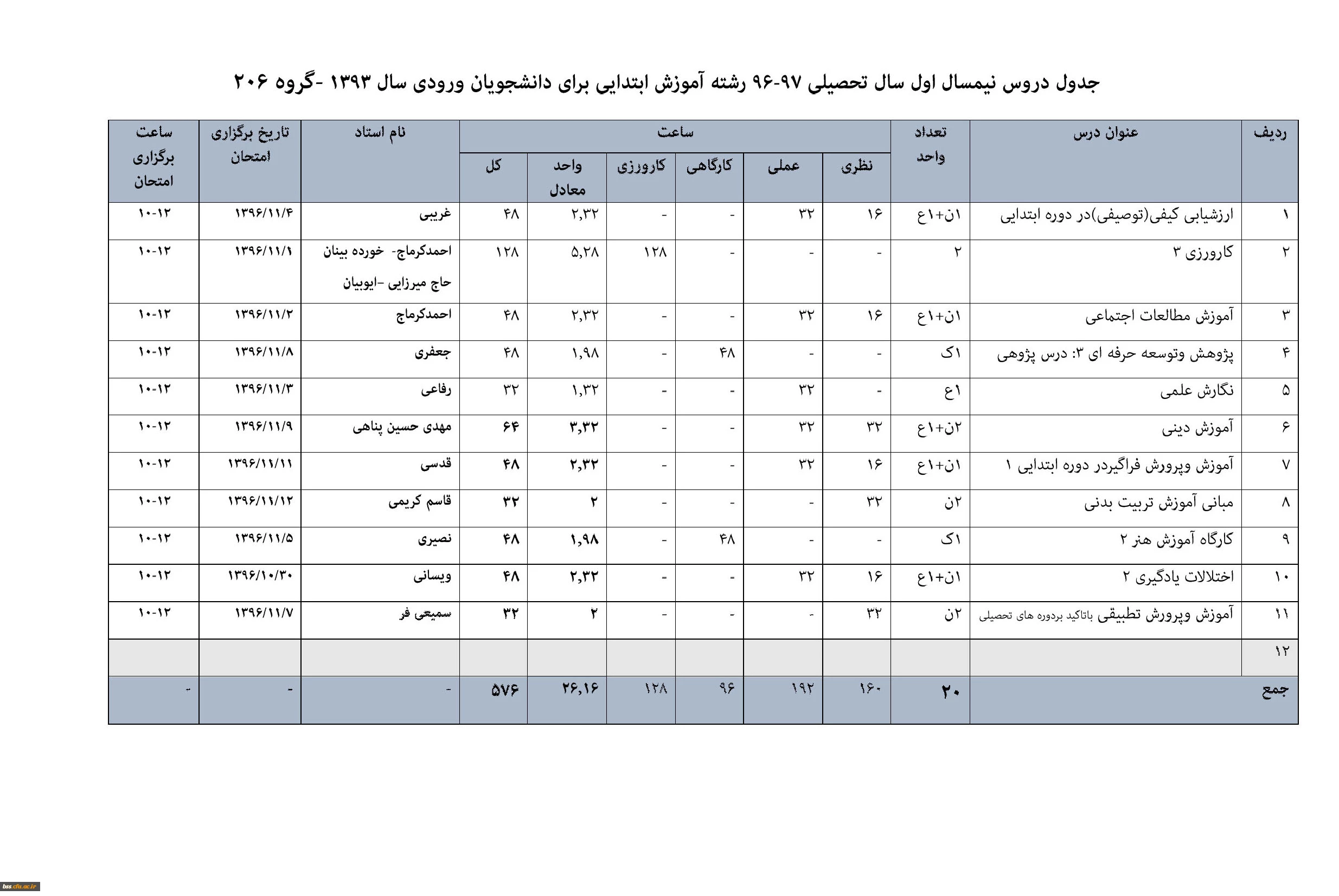 جدول برنامه درسی رشنه های کارشناسی پیوسته