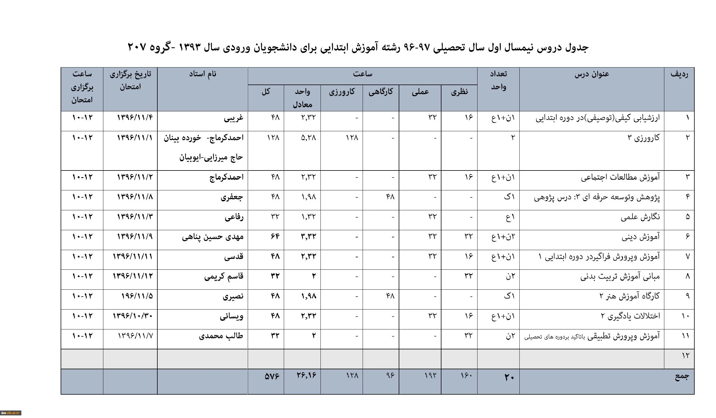 جدول برنامه درسی رشنه های کارشناسی پیوسته