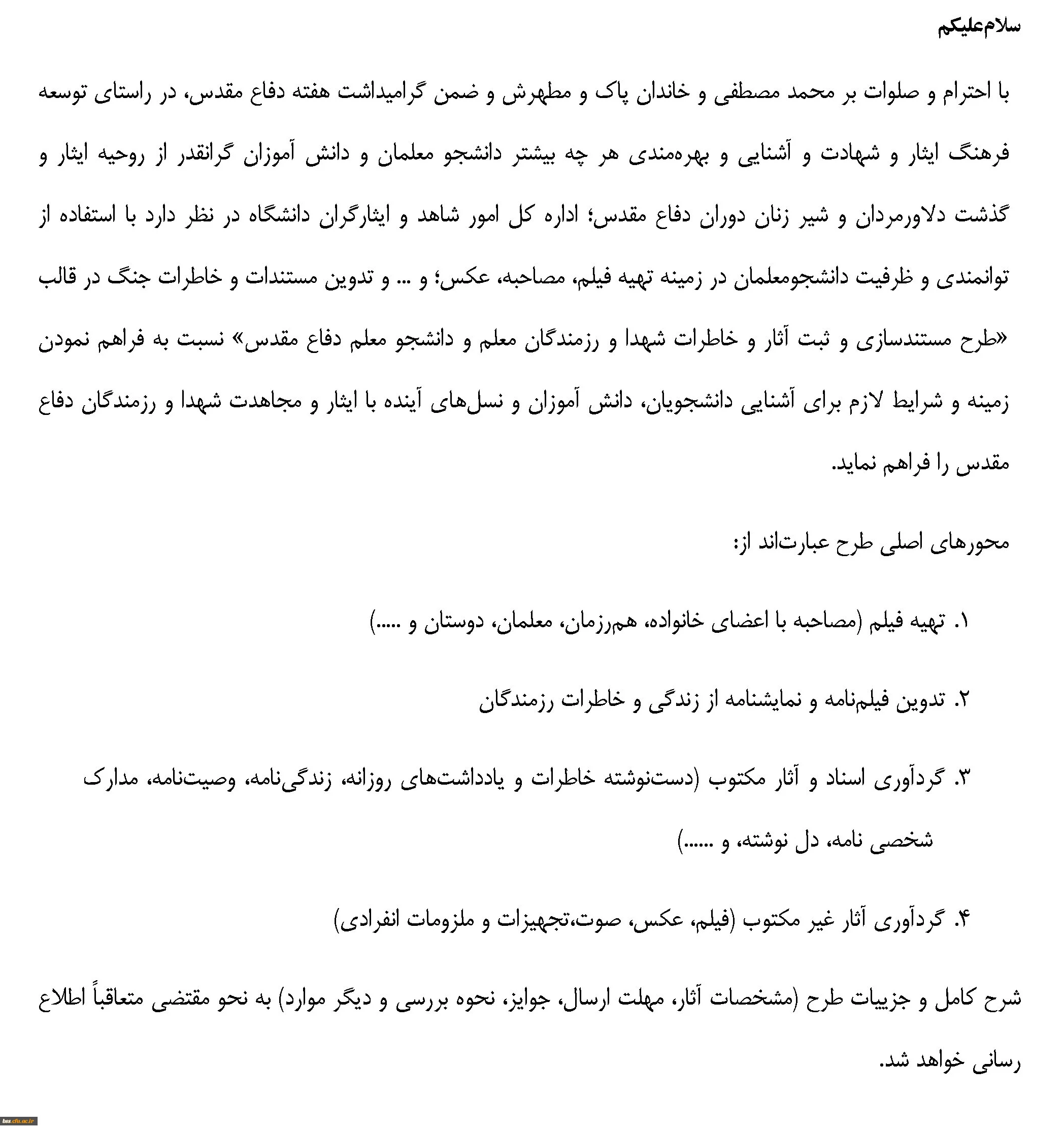 مستندسازی خاطرات و زندگینامه رزمندگان دوران دفاع مقدس به مناسبت گرامیداشت هفته دفاع مقدس