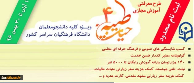 با اعلام نهاد نمایندگی مقام معظم رهبری و با هدف توانمند سازی دانشجومعلمان: ثبت نام چهارمین دوره معرفتی آموزش مجازی حیات طیبه به صورت متمرکز و سراسری آغاز شد 2