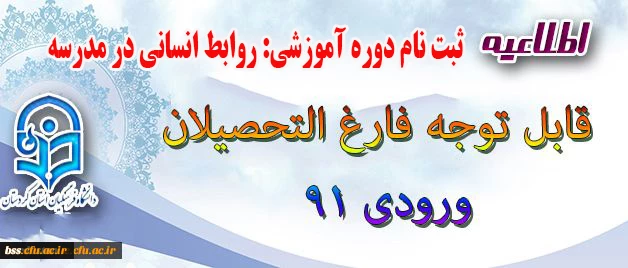 اطلاعیه قابل توجه فارغ التحصیلان ورودی 91 ثبت نام دوره آموزشی ((روابط انسانی در مدرسه )) 2