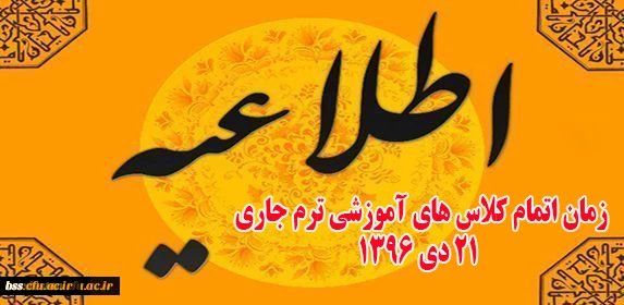 اطلاعیه معاونت آموزشی : زمان اتمام کلاس های آموزشی ترم 2