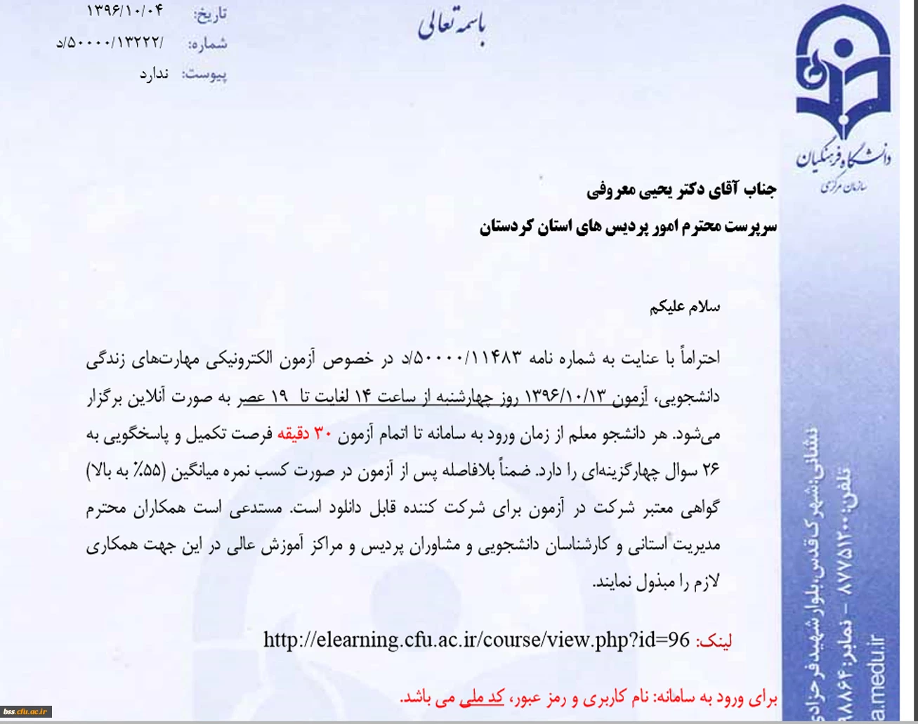 فرم دانشجو