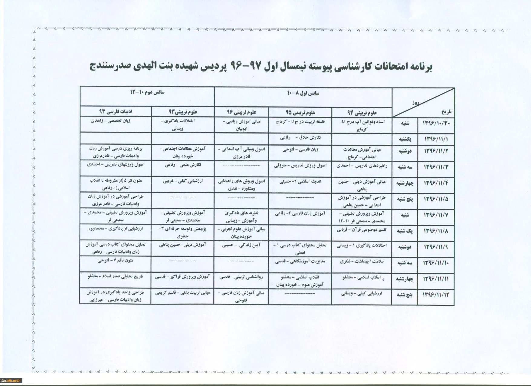 جدول برنامه درسی رشنه های کارشناسی پیوسته