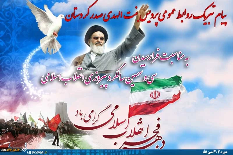 پیام تبریک روابط عمومی پردیس بنت الهدی صدر کردستان به مناسبت فرا رسیدن سی و نهمین سالگرد پیروزی انقلاب اسلامی