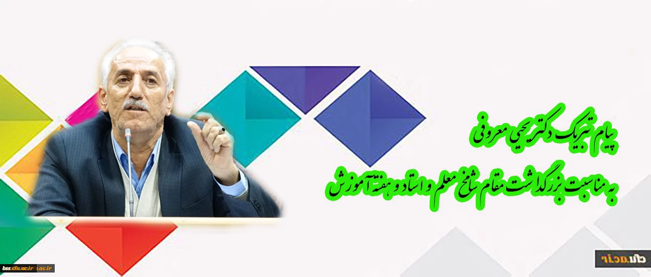 امتیاز دهید : پیام دکتر معروفی به مناسبت بزرگداشت مقام شامخ معلم و استاد و هفته آموزش 2 چهارشنبه 12 اردیبهشت 1397 ساعت 13:14