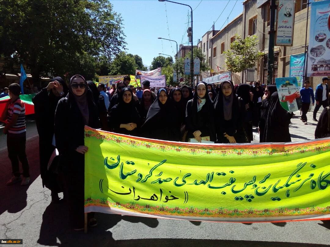همگام با امت همیشه در صحنه ایران اسلامی حضور همکاران و جمعی از دانشجو معلمان پردبس بنت الهدی صدر کردستان در راهپیمایی عظیم روز جهانی قدس 11