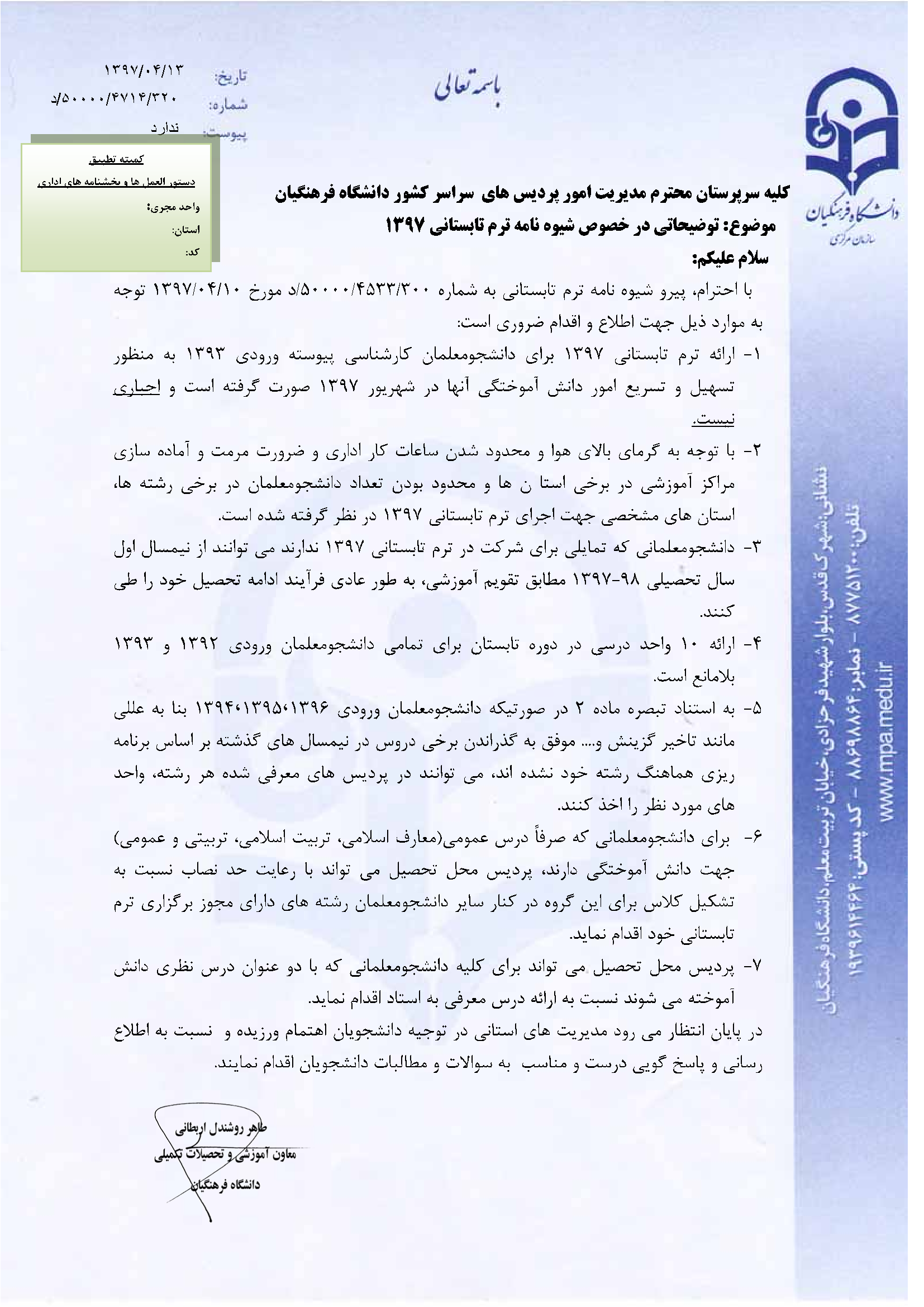 مواردی که در شیوه نامه ترم تابستانی باید رعایت کرد
