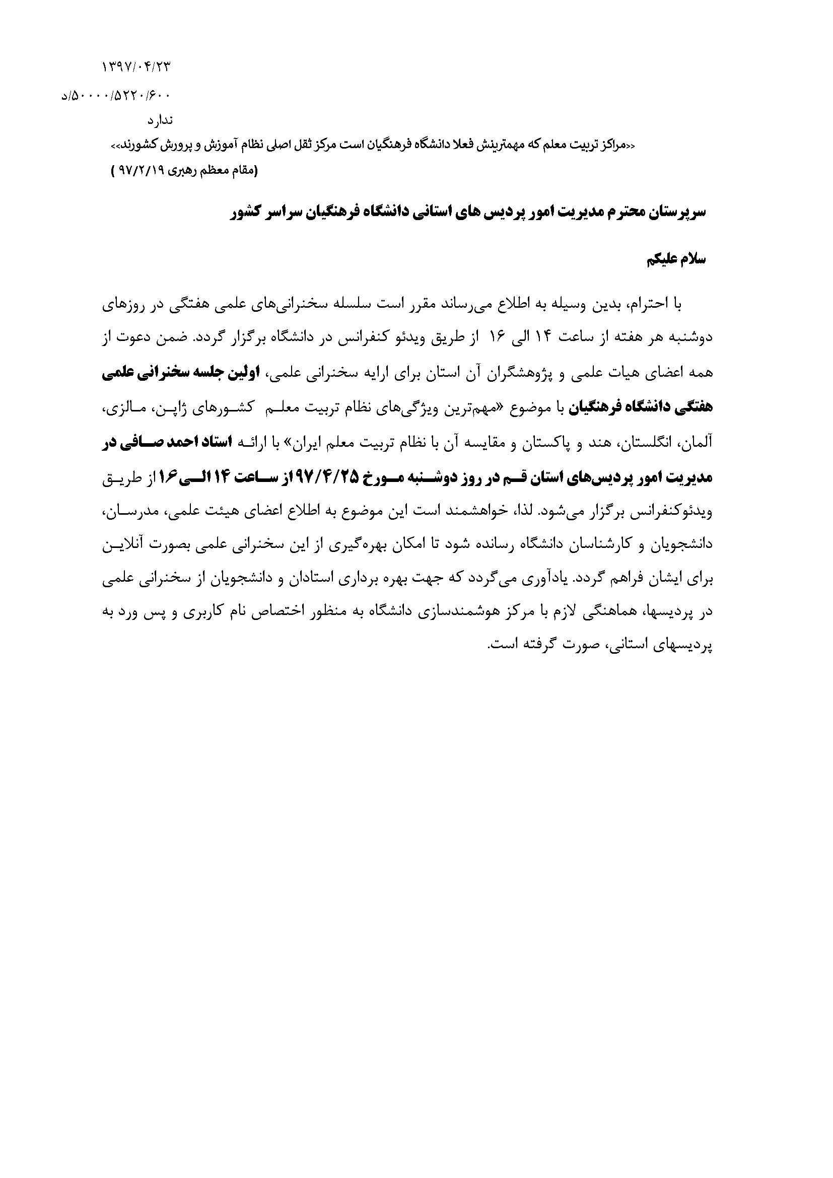 منشور فرهنگی ، اجتماعی دانشگاه فرهنگیان