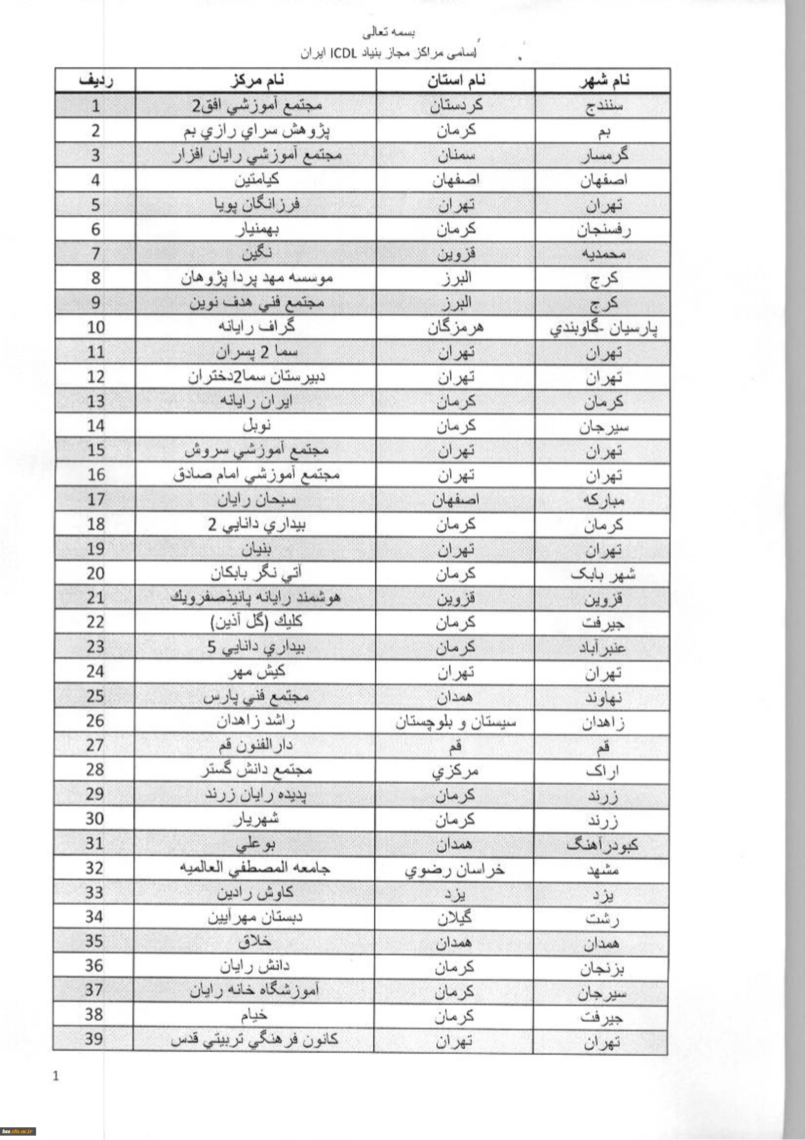 لیست مرتاکز idsl