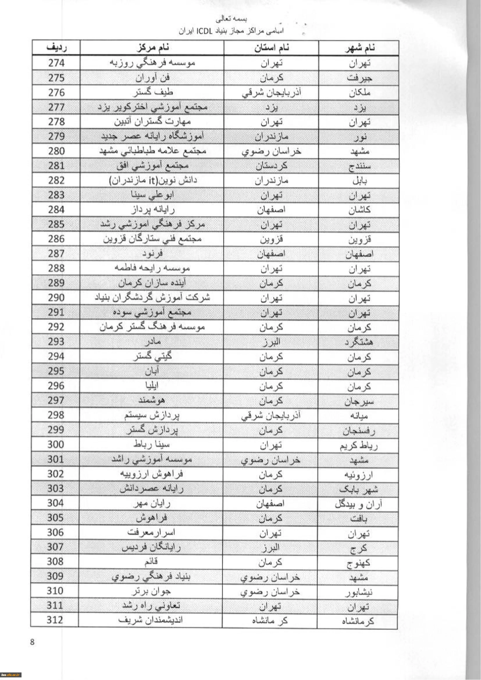 جدول توزیع درسها در هشت نیم سال کارشناسی پیوسته