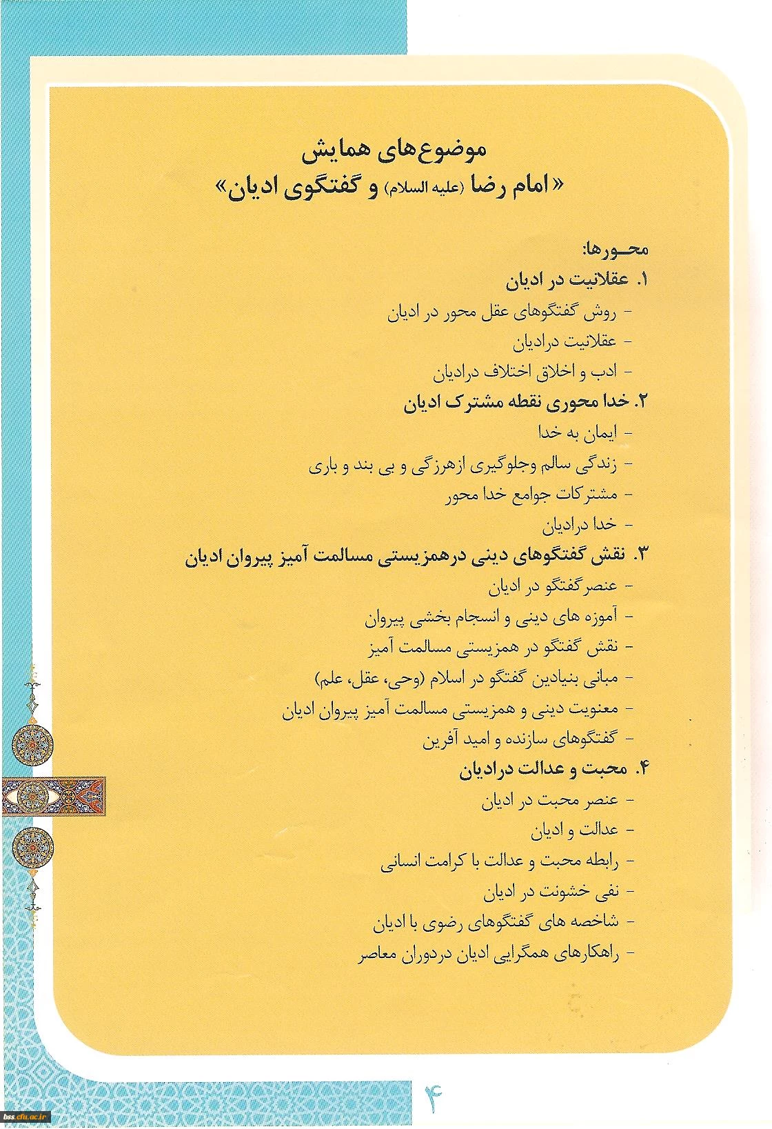 اولین همایش بیمنت المللی امام رضا (ع) و گفتگوی ادیان