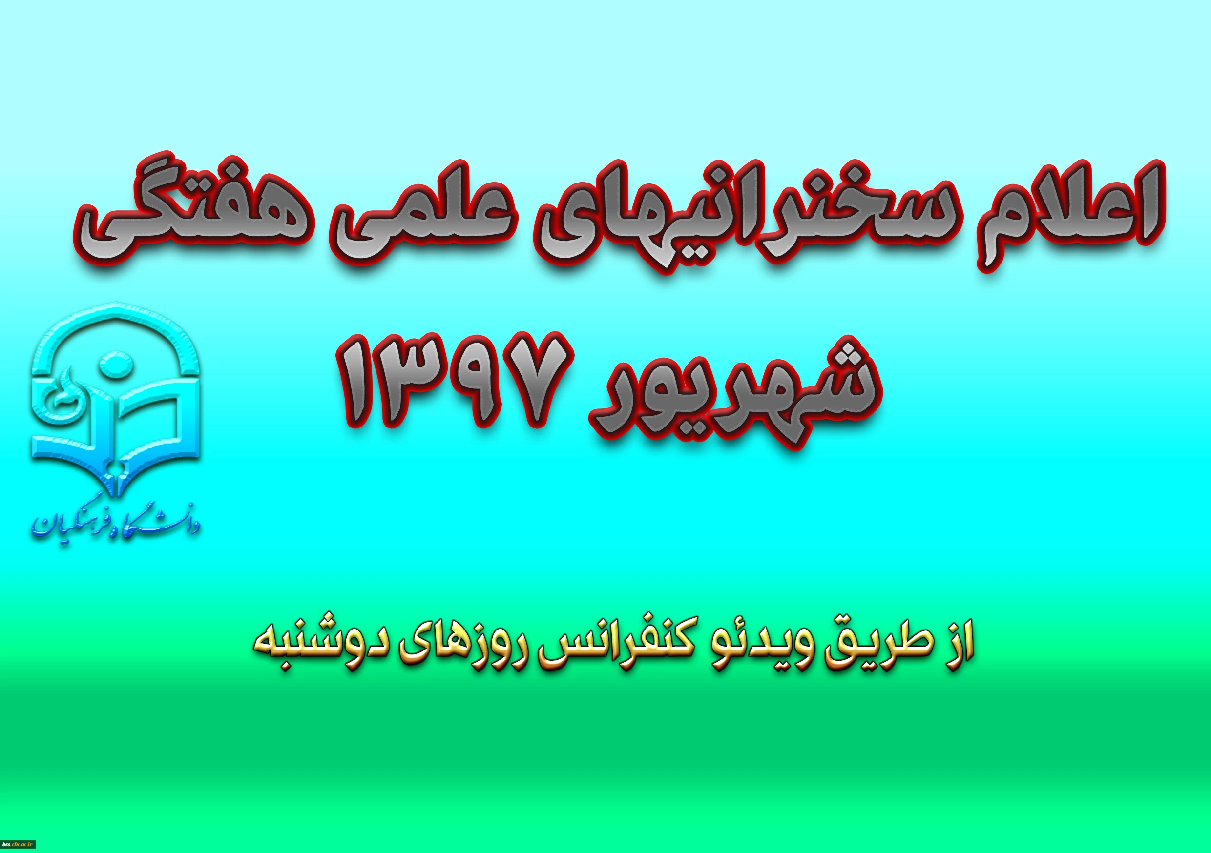 اعلام سخنرانیهای علمی هفتگی شهریور 1397