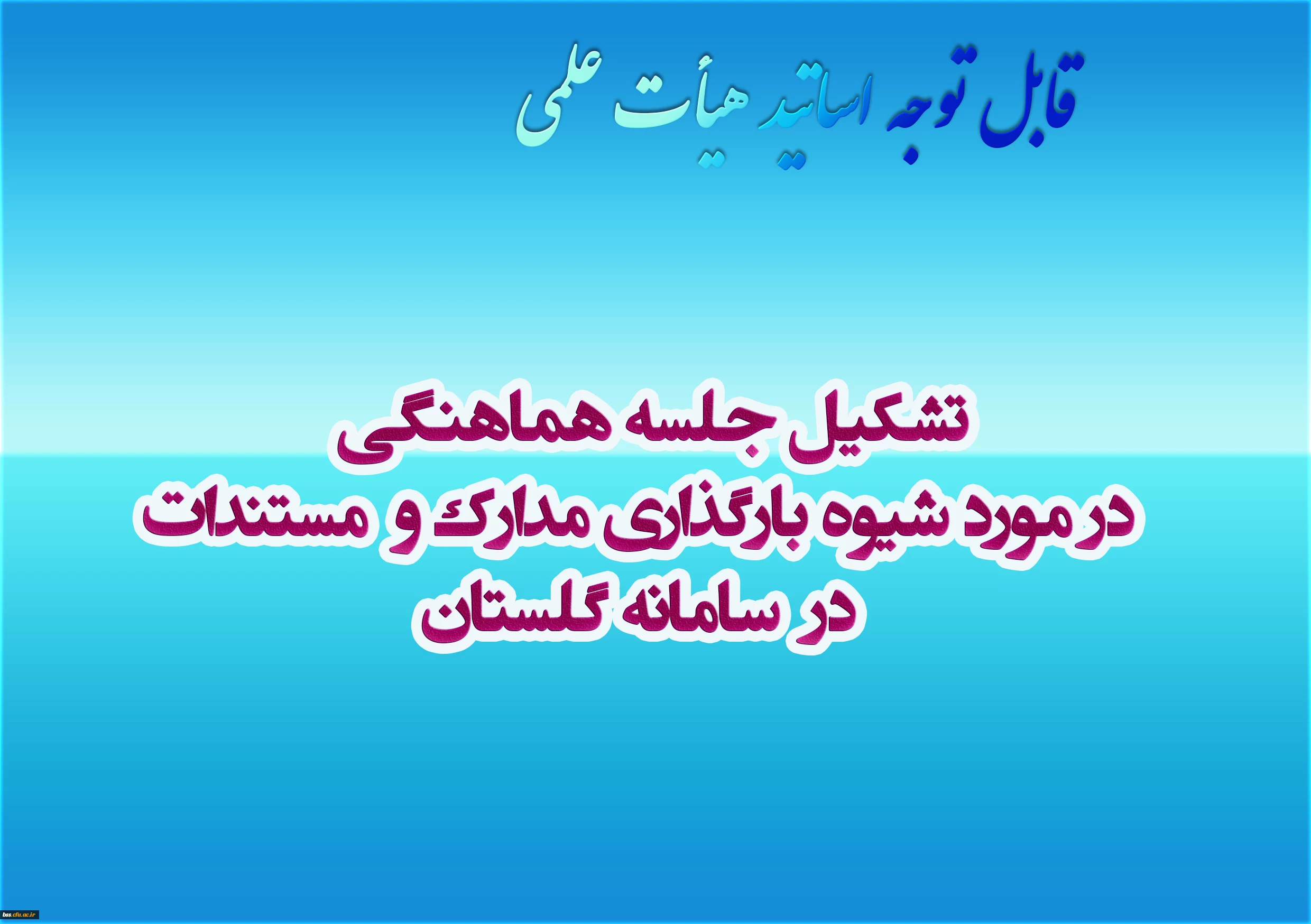 امتیاز دهید : تشکیل جلسه هماهنگی در مورد شیوه بارگذاری مدارک و مستندات در سامانه گلستان دوشنبه 5 شهریور 1397 ساعت 8:42