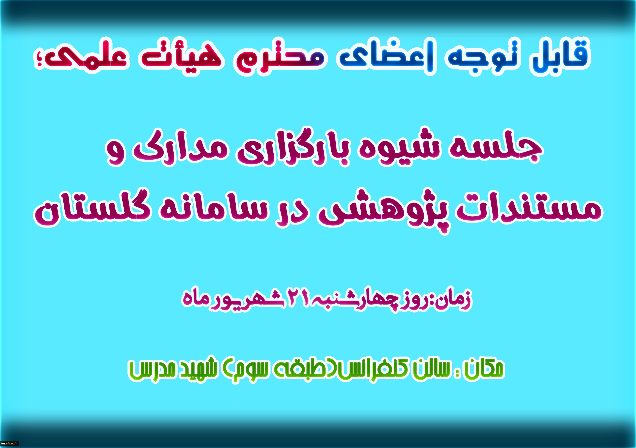 امتیاز دهید : جلسه شیوه بارگزاری مدارک و مستندات پژوهشی در سامانه گلستان دوشنبه 12 شهریور 1397 ساعت 12:12
