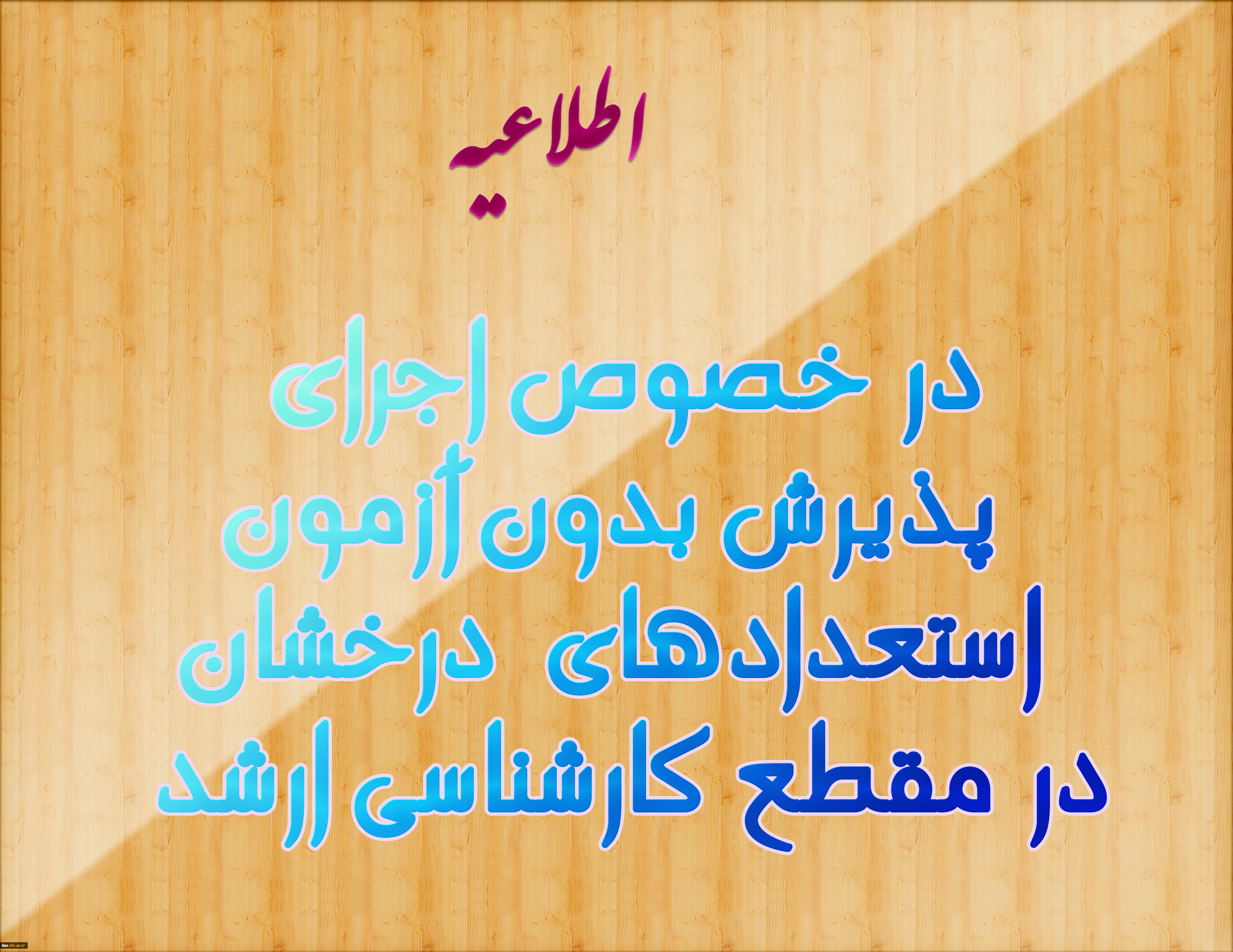 در خصوص اجرای پذیرش بدون آزمون استعدادهای درخشان در مقطع کارشناسی ارشد؛ به اطلاع می رساند