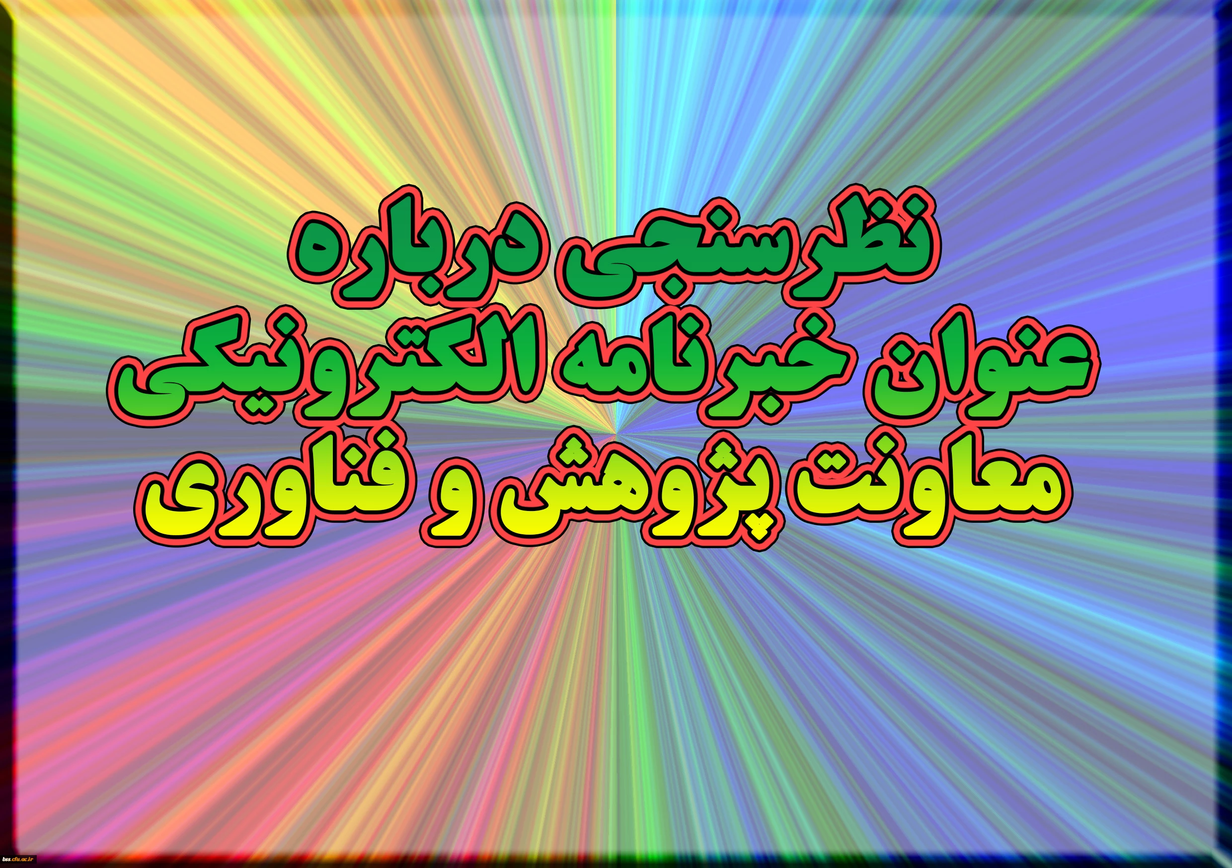امتیاز دهید : نظرسنجی درباره عنوان خبرنامه الکترونیکی معاونت پژوهش و فناوری 2 چهارشنبه 23 مرداد 1398 ساعت 18:30