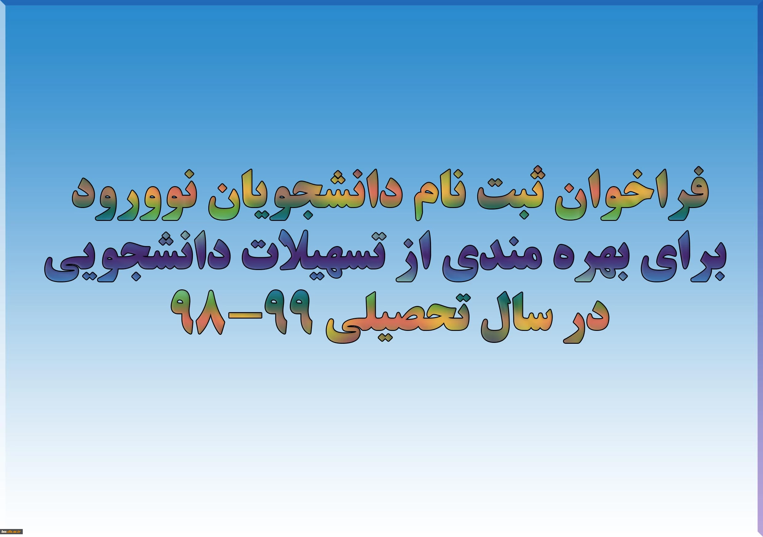 فراخوان ثبت نام دانشجویان نوورود برای بهره مندی از تسهیلات دانشجویی در سال تحصیلی 99-98 2