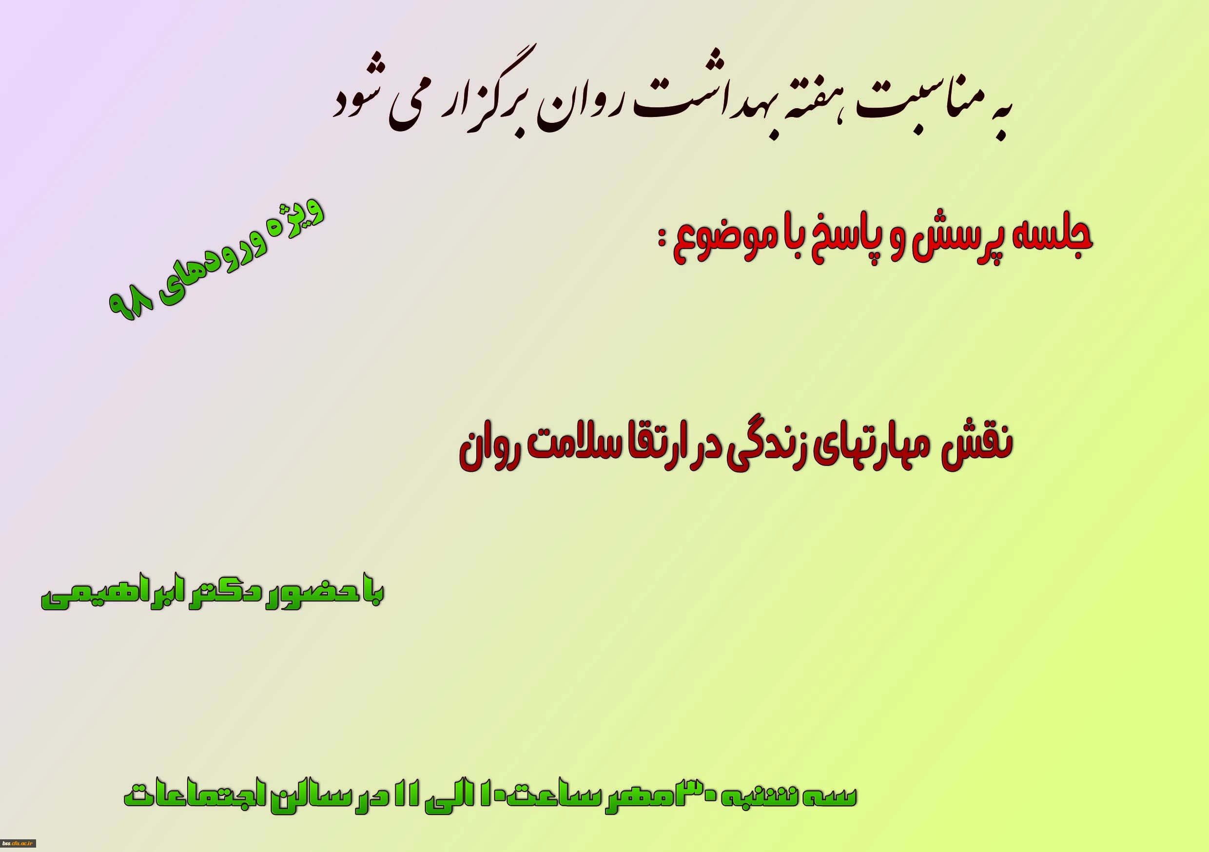 به مناسبت هفته بهداشت روان برگزار می شود: جلسه پرسش و پاسخ با موضوع : نقش مهارتهای زندگی در ارتقا سلامت روان 2