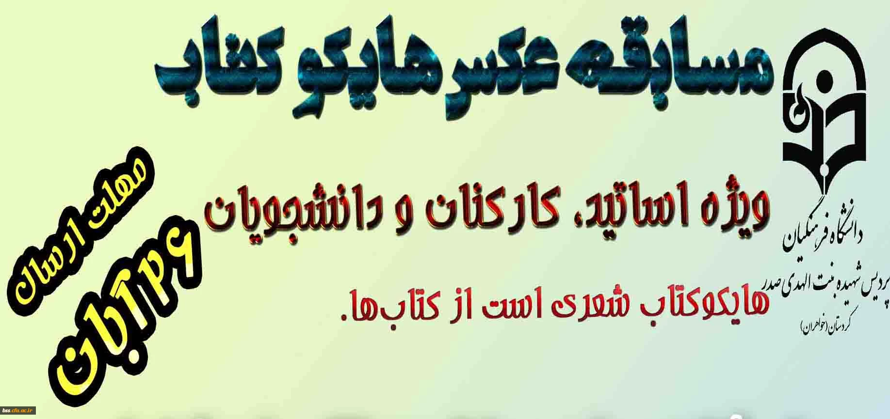 امتیاز دهید : به مناسبت بزرگداشت هفته کتاب برگزار می شود: مسابقه عکس هایکو کتاب 2 جمعه 24 آبان 1398 ساعت 22:02