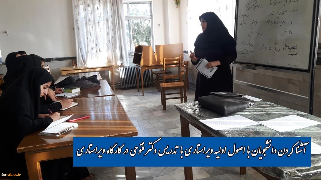 آشنا کردن دانشجویان با اصول اولیه ویراستاری با تدریس دکتر فتوحی در کارگاه ویراستاری 2