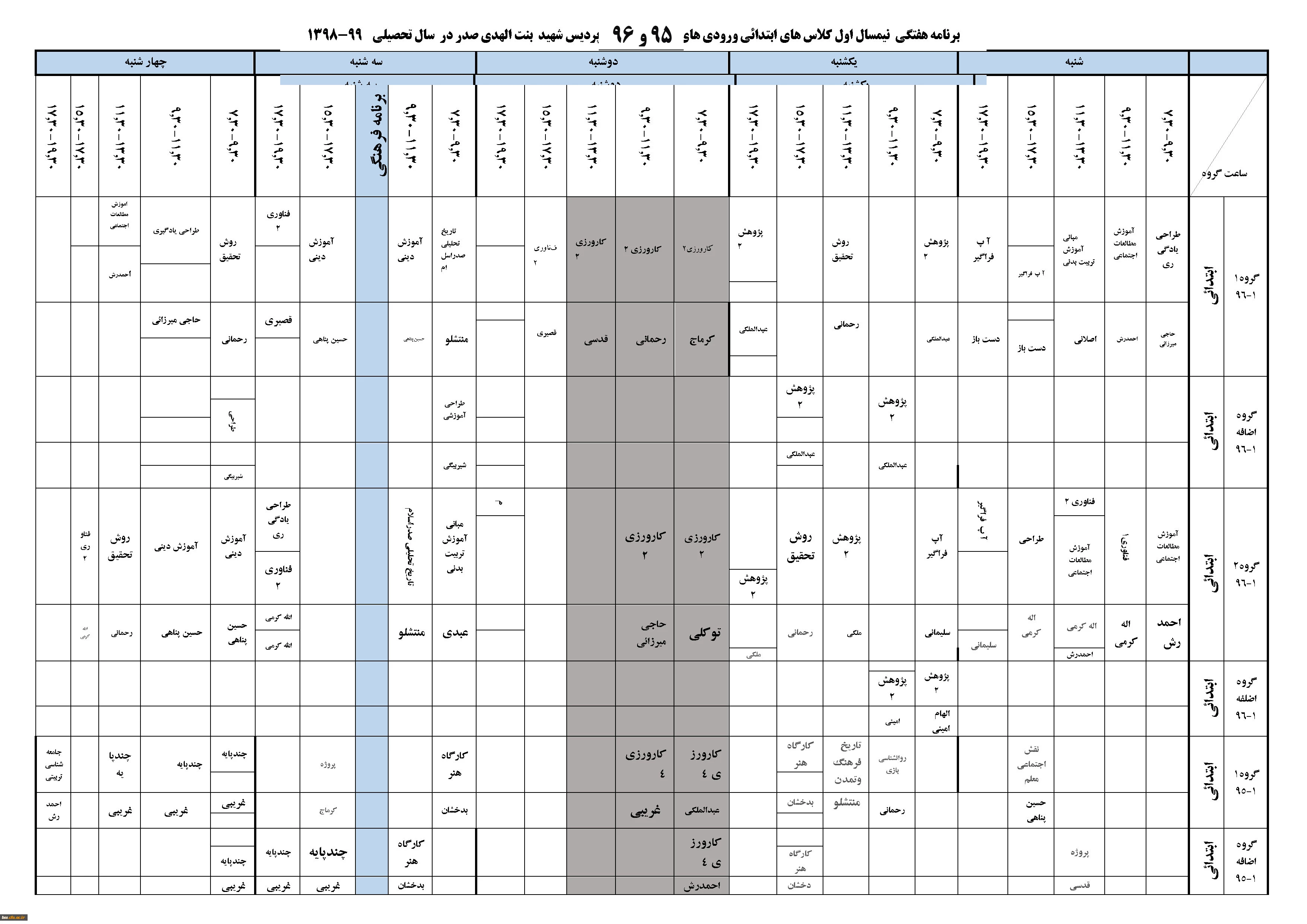 برنامه کلاسی نیم سال دوم سال تحصیلی 99-1398